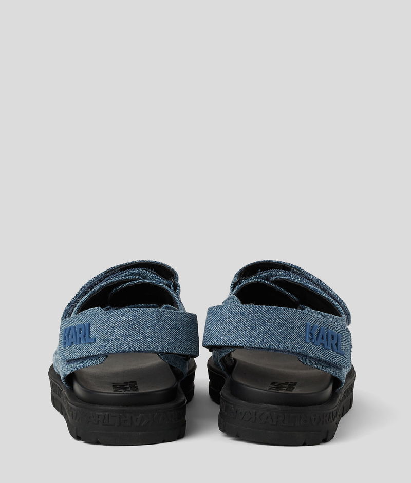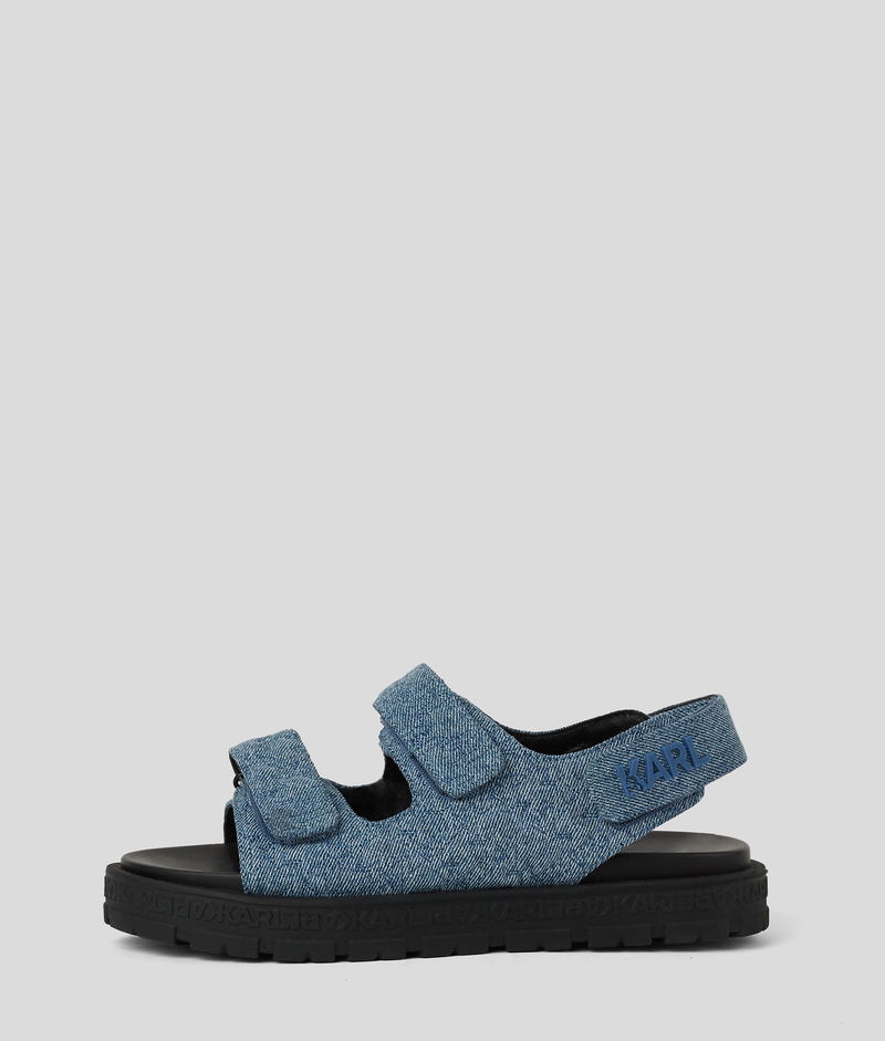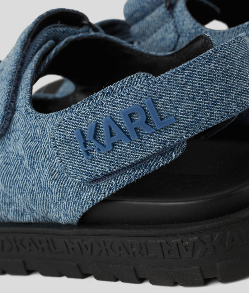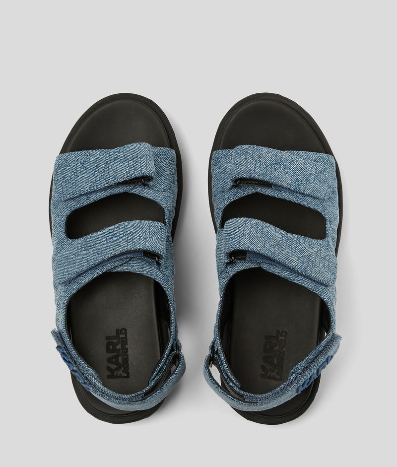 All-over embossed KL Monogram straps and a chunky outsole shape a modern, lightweight sandal.