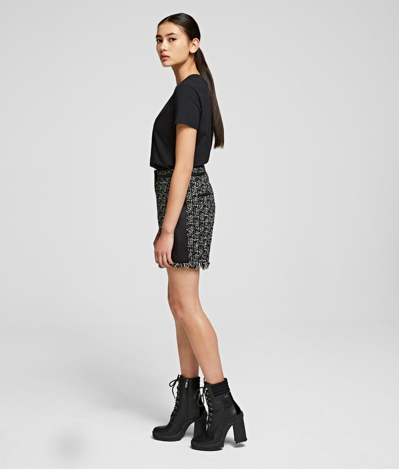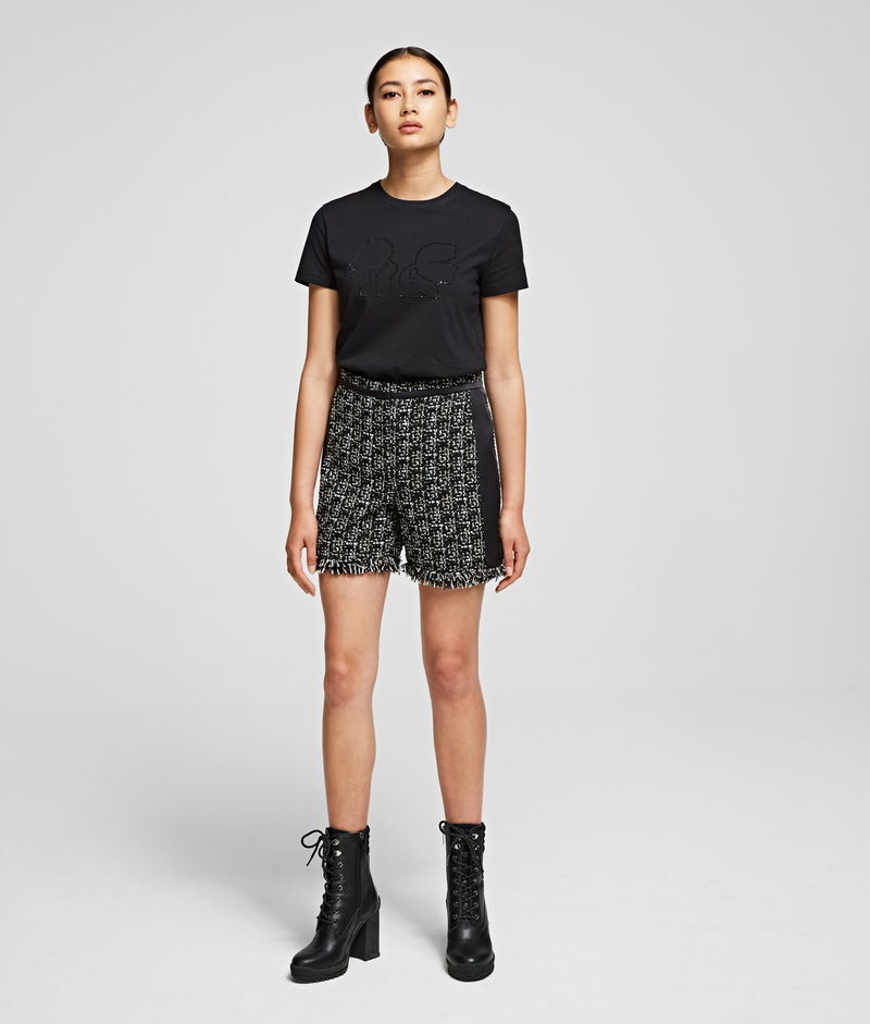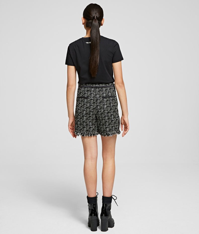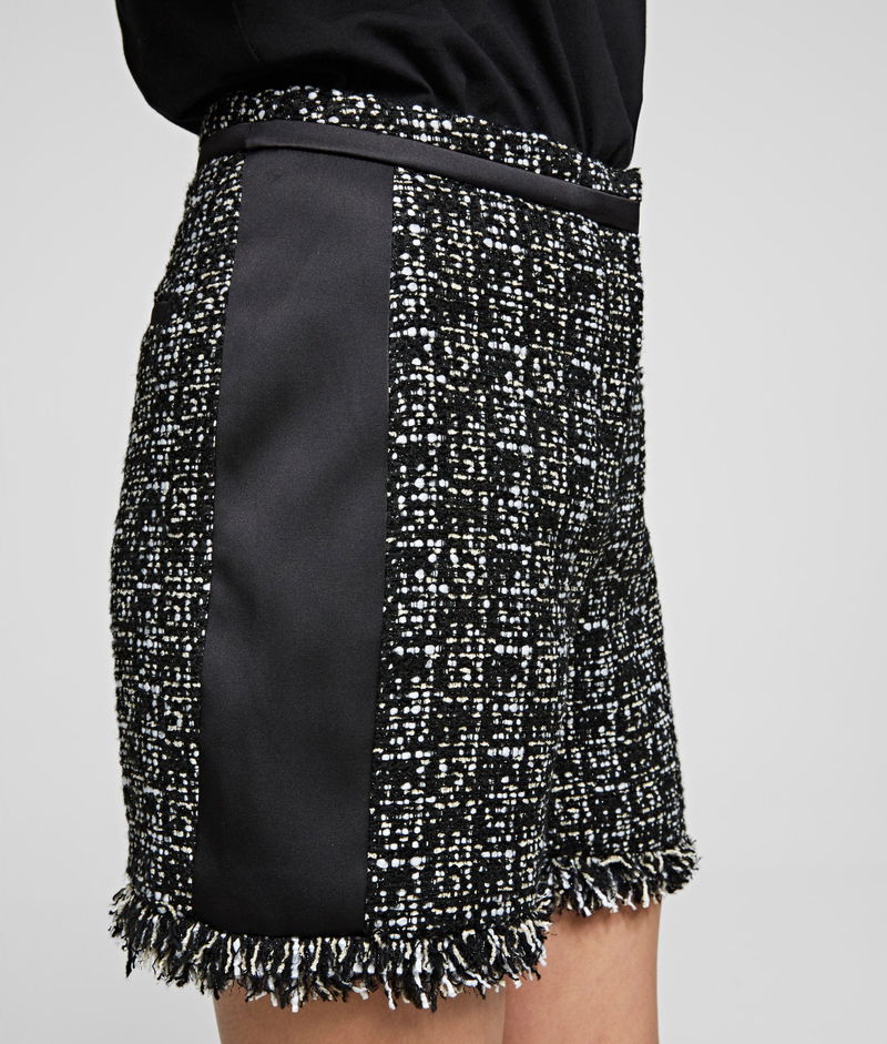 Part of the Karl x Olivia capsule collection, these shorts are cut from this season's key fabric, a monochromatic French bouclé. Framed by matte satin panels, the A-line fit flatters the silhouette.