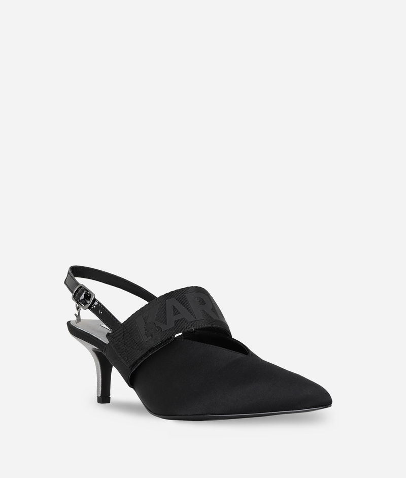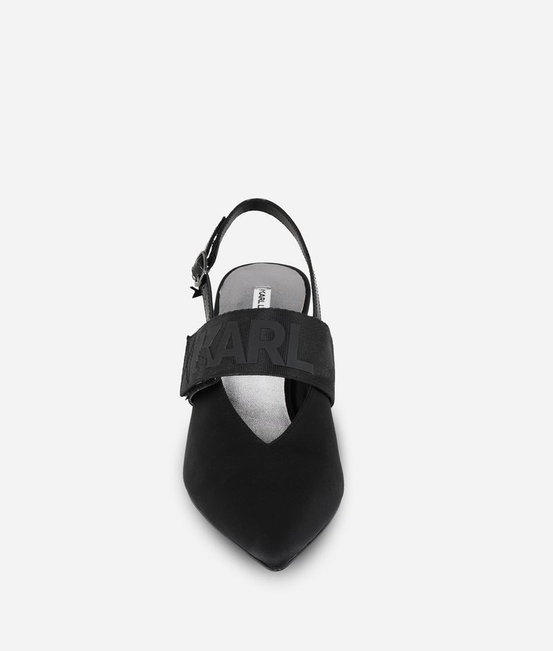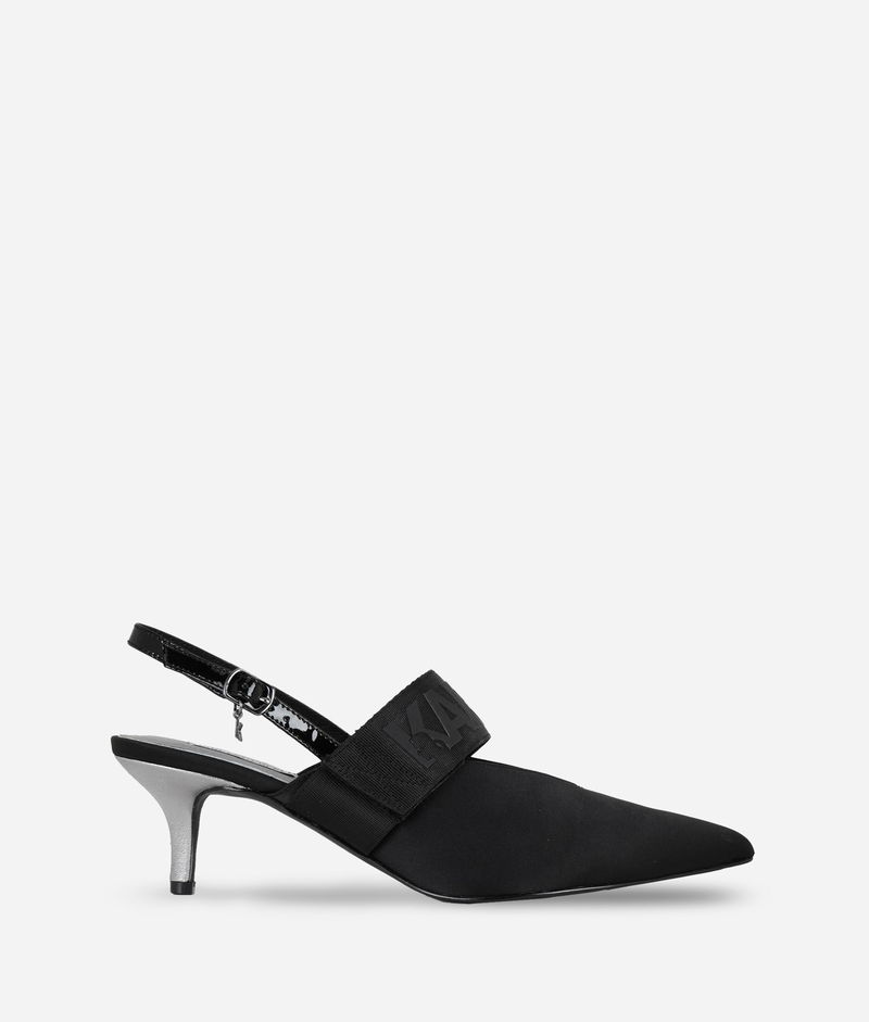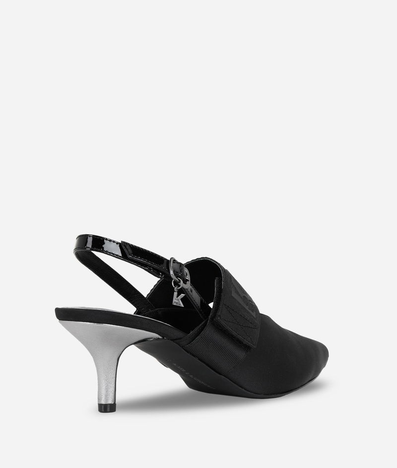 Sophisticated slingback sandal featuring rocky gunmetal details on the buckle and heel. A day-to-night style staple for business looks and dinner dates.