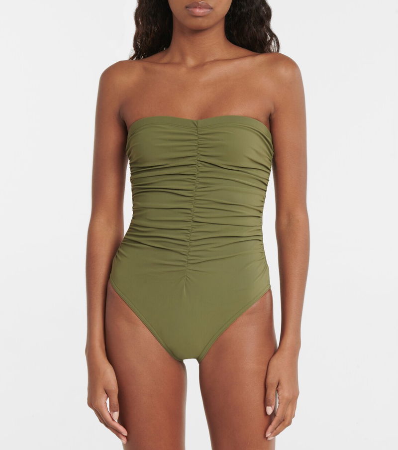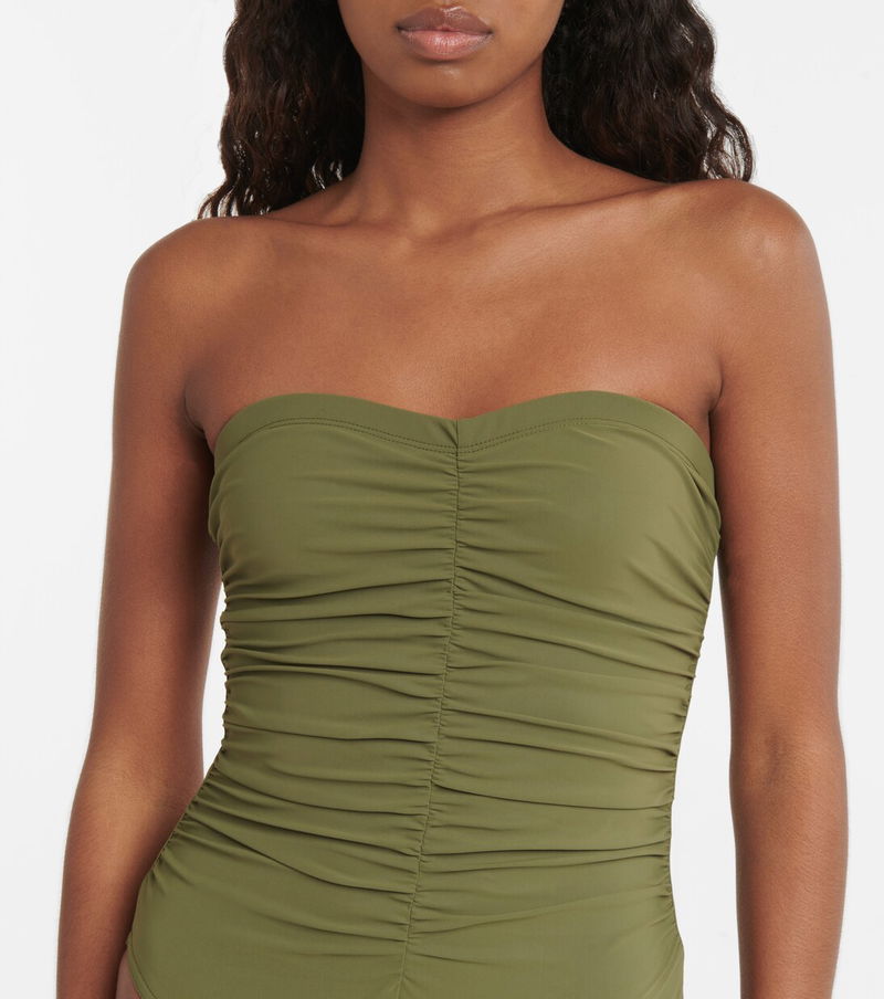 Karla Colletto’s swimwear is cut from the finest fabrics using innovative manufacturing techniques and tailoring expertise. This Emery swimsuit is defined by a strapless silhouette and ruched detailing to create a sculpting effect.