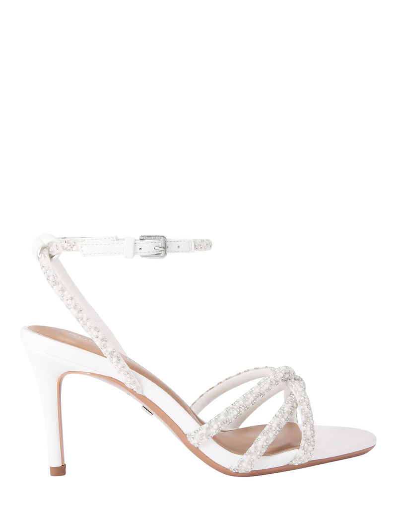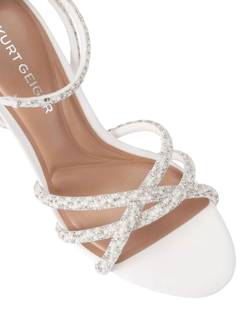 This Abra heel arrives with crystal embellishments across the upper. The ankle strap is fastened with a buckle.