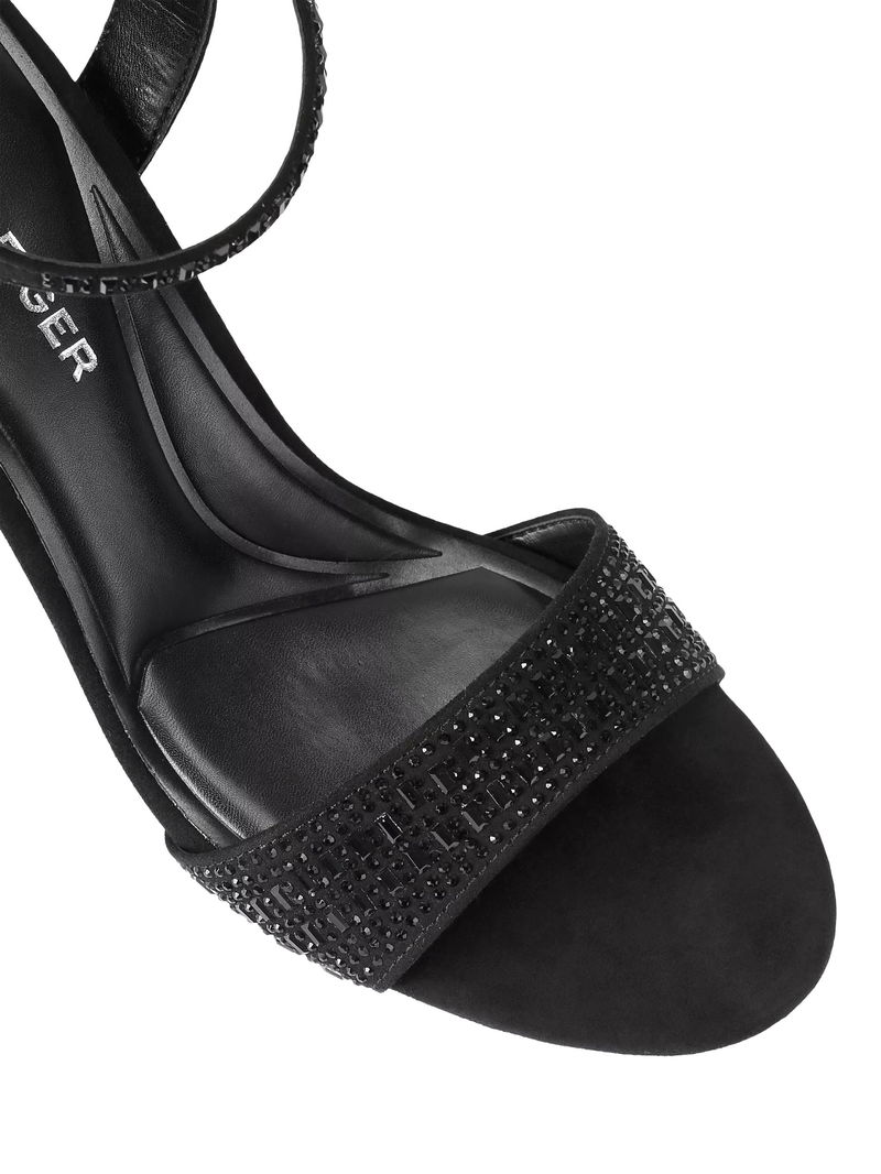 Fleur Embellished Block Heel Sandals, Black