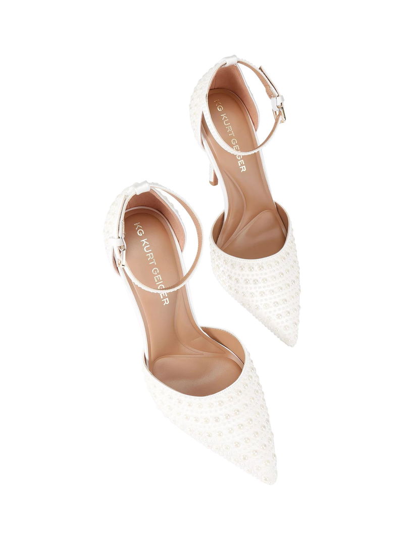 A pair of embellished KG Kurt Geiger courts. The pointed toe and high stiletto heel sharpen your style for every smart event, while the secure buckle lets you stride with confidence.