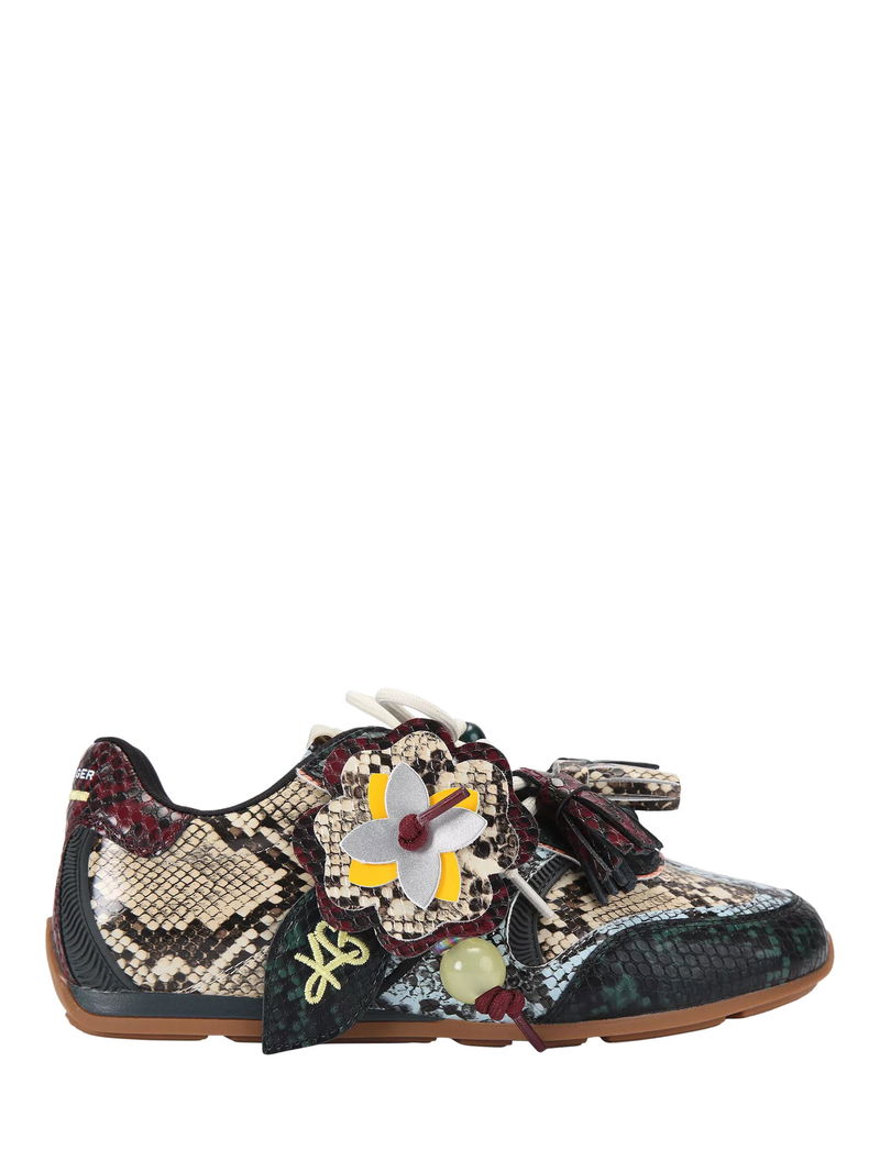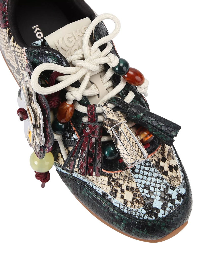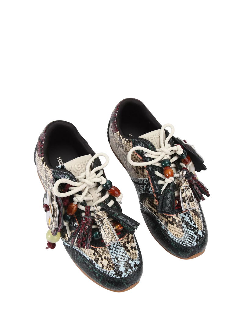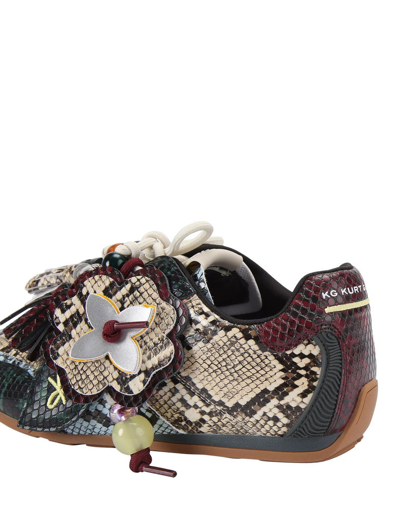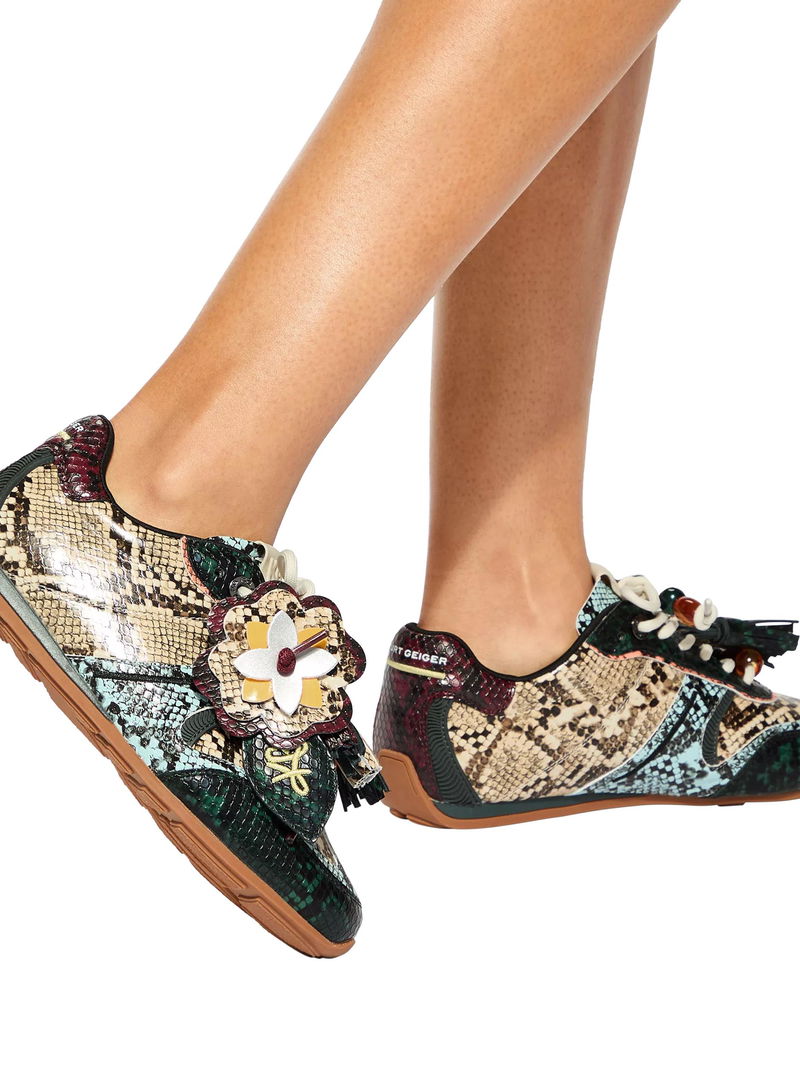 Lennon Leather Snake Print Trainers, Black Multi Black