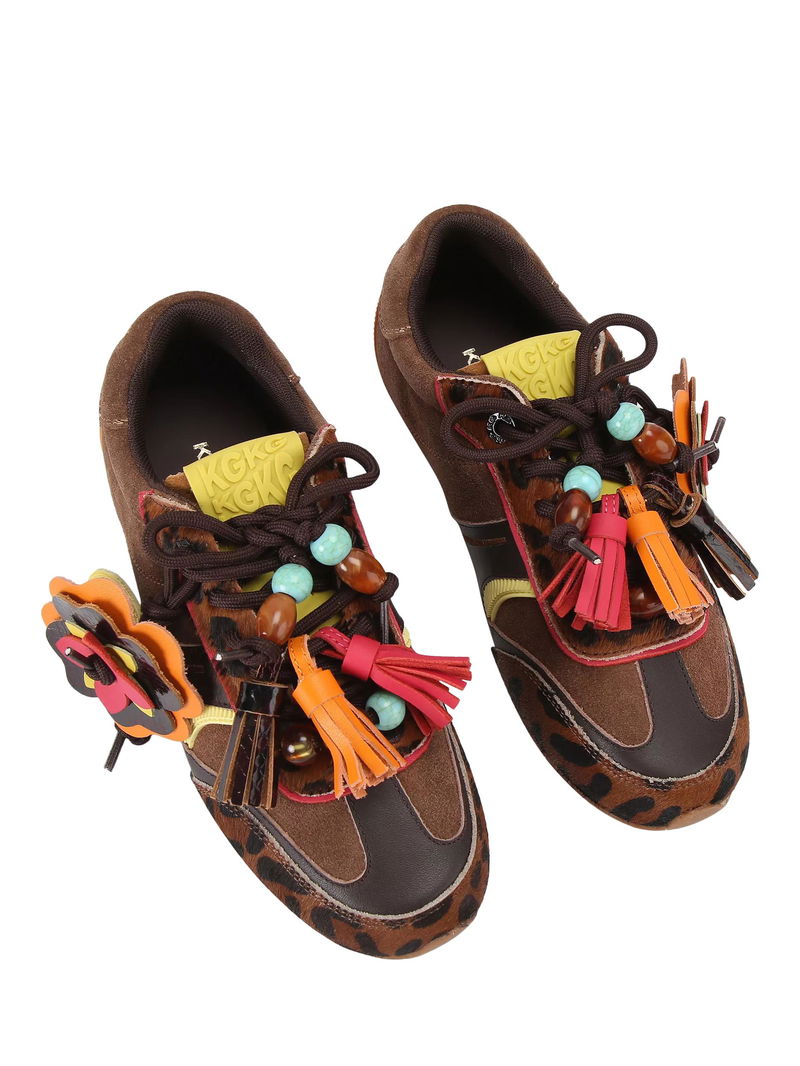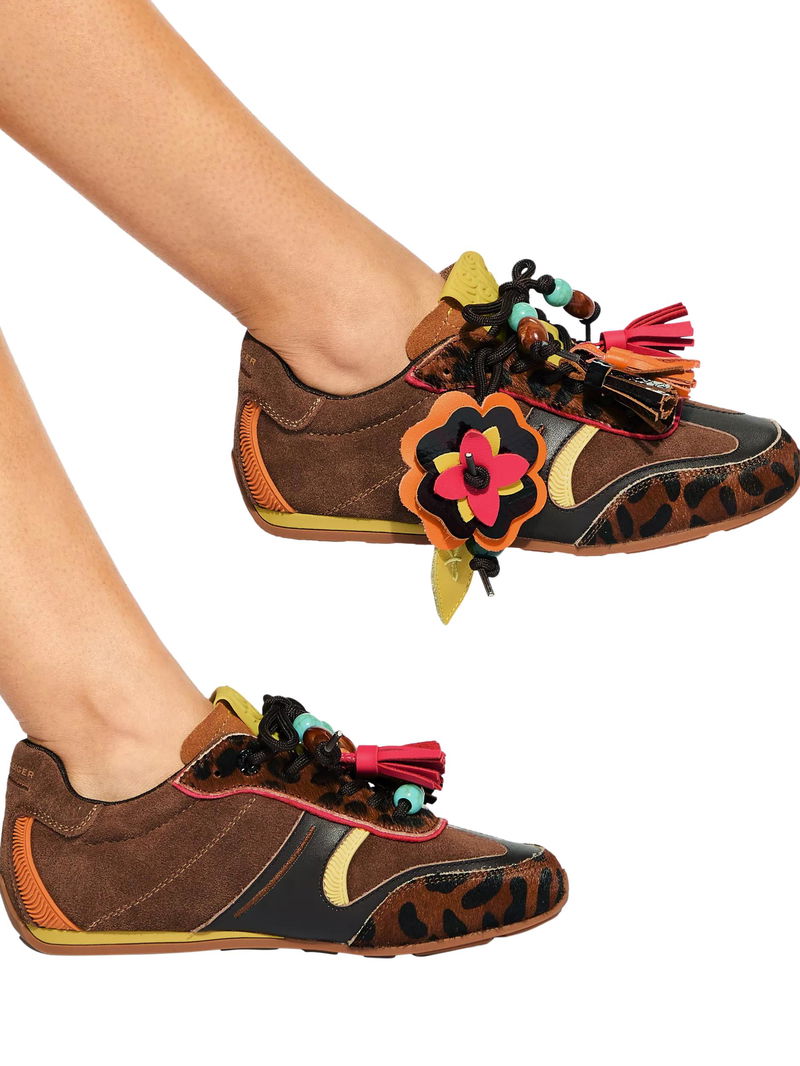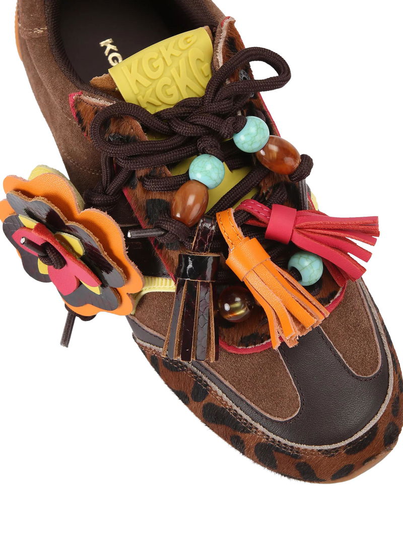Lennon Suede Leopard Print Trainers, Brown Multi Brown