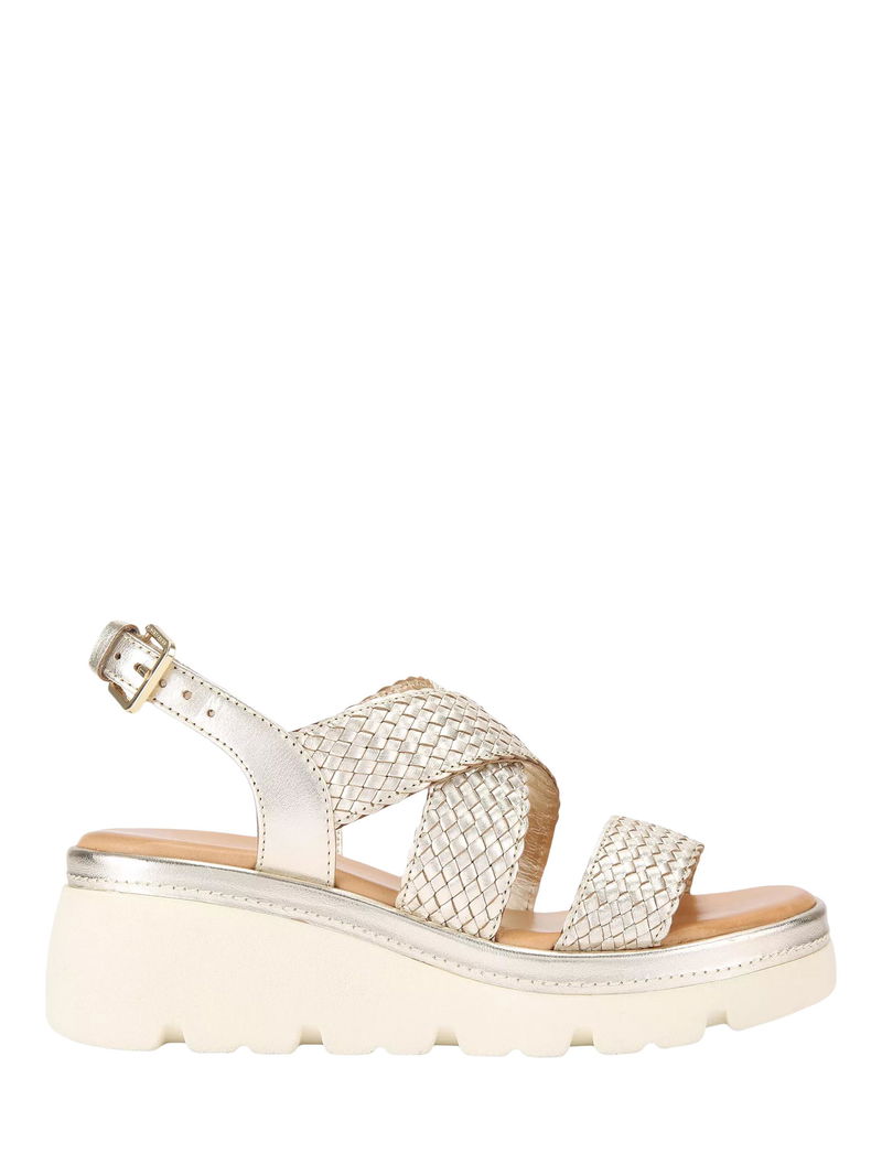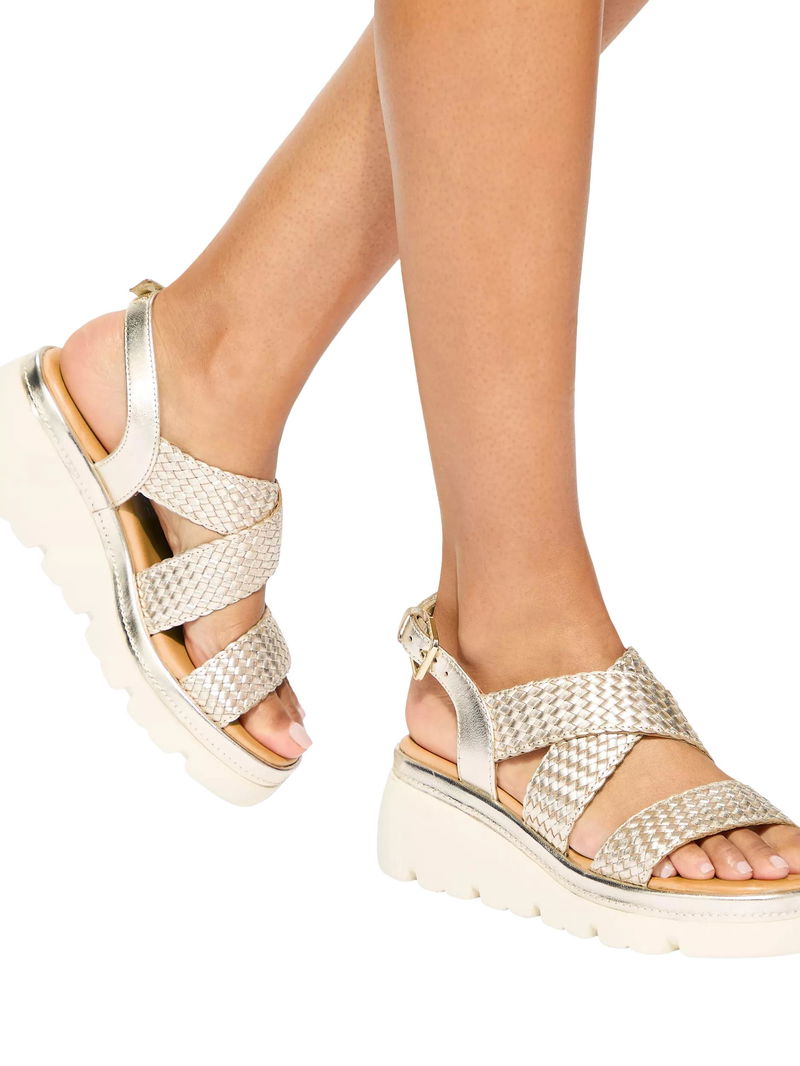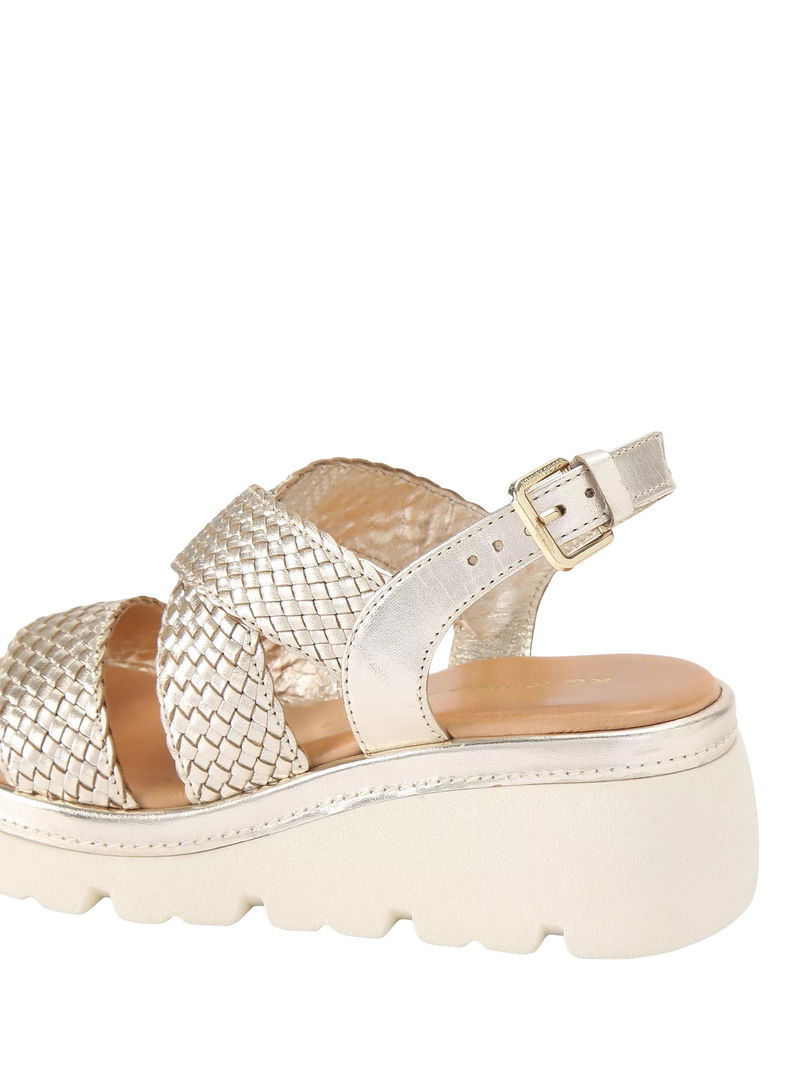 Perrie Woven Leather Chunky Espadrille Sandals, Gold