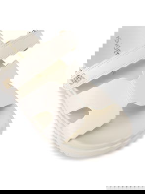 These Reese sandals from KG Kurt Geiger feature a synthetic upper with a cut-out wide strap across the toe. There is a gold-tone branded stud on the upper riptape strap.