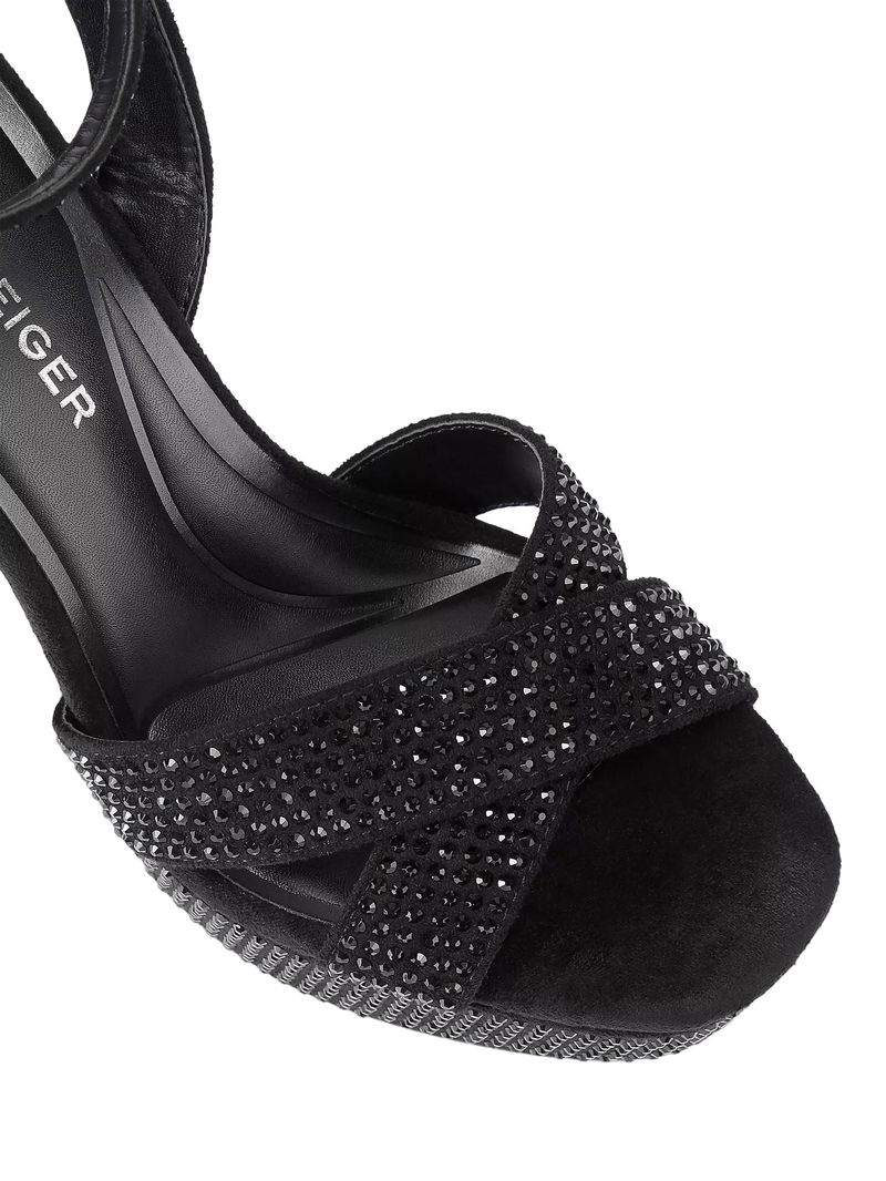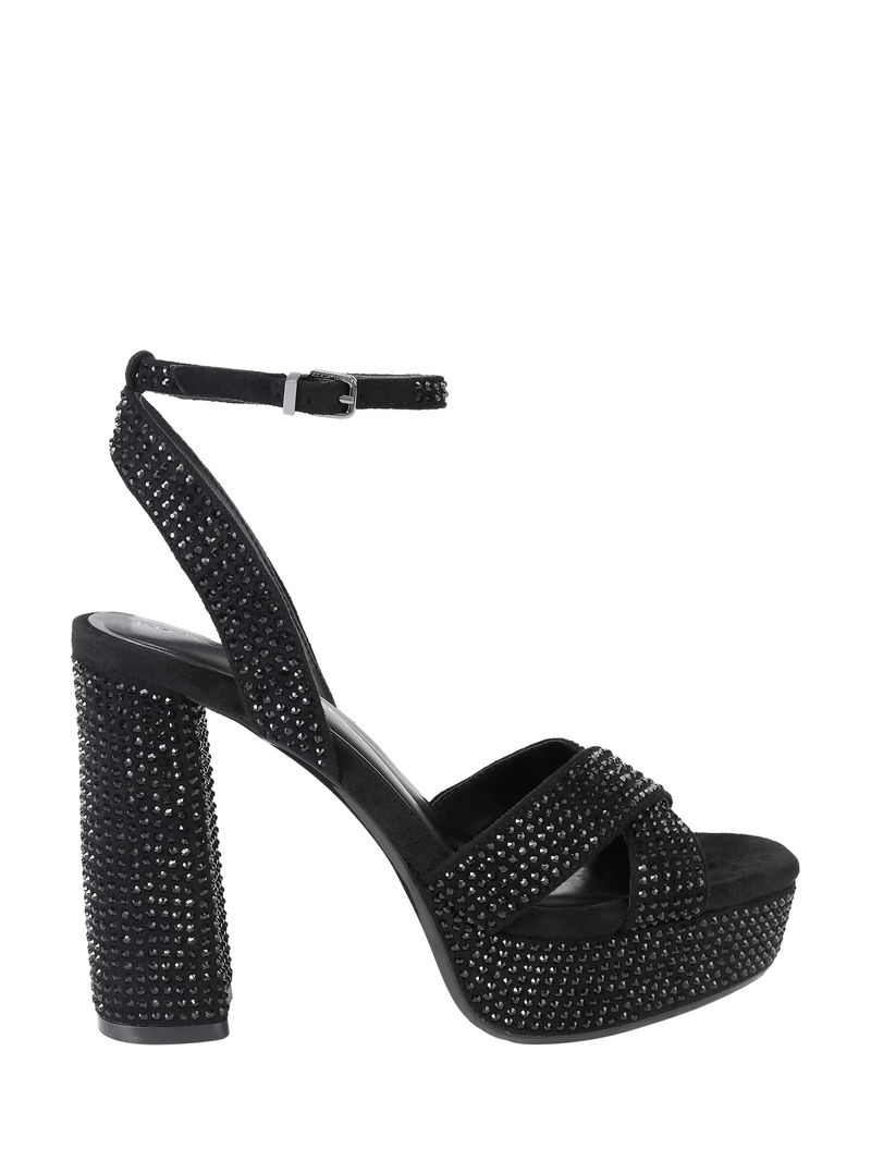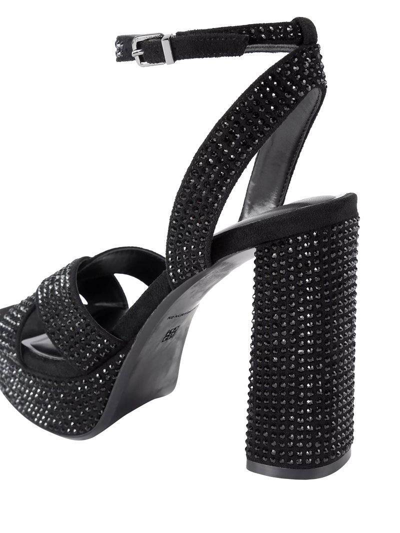 This pair of Silo platform heels is crafted from a black microsuede fabric, which is embellished with black crystals. The ankle strap is fastened with a branded buckle detail.