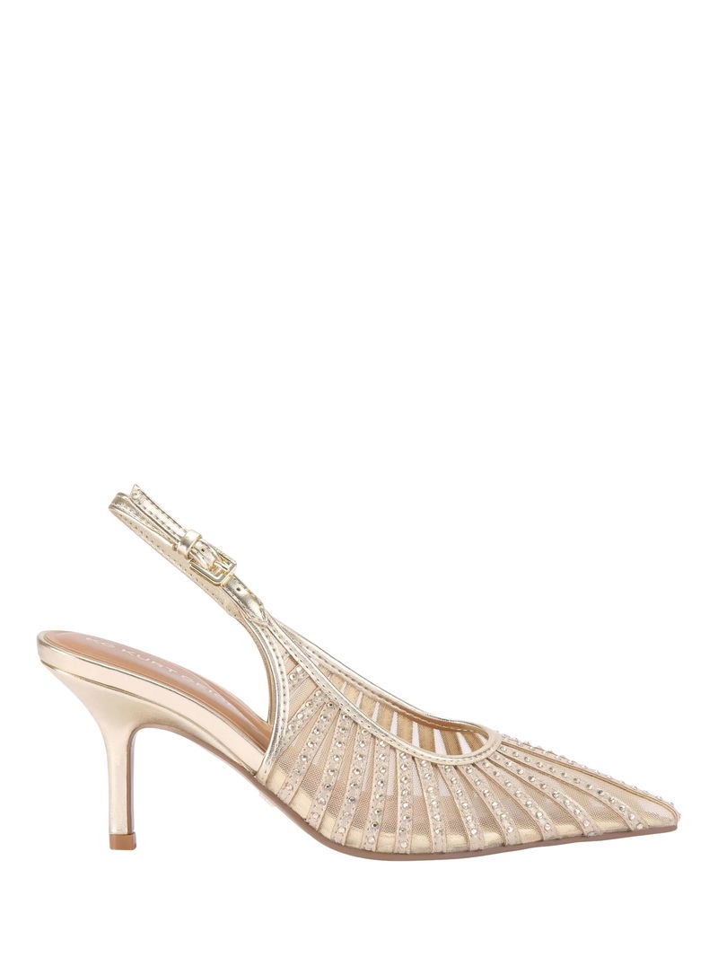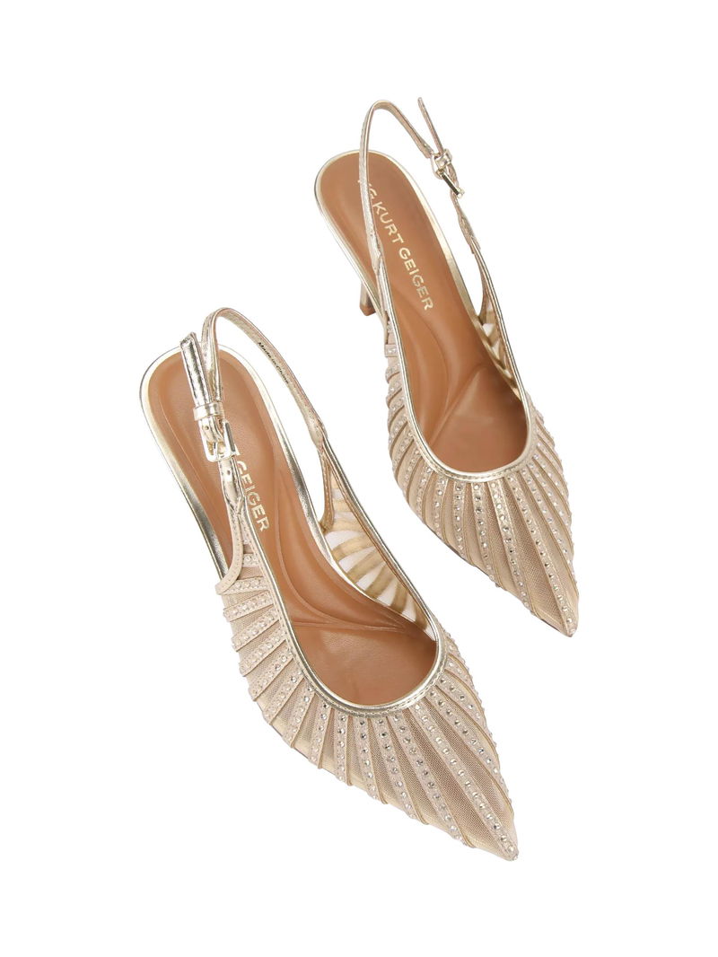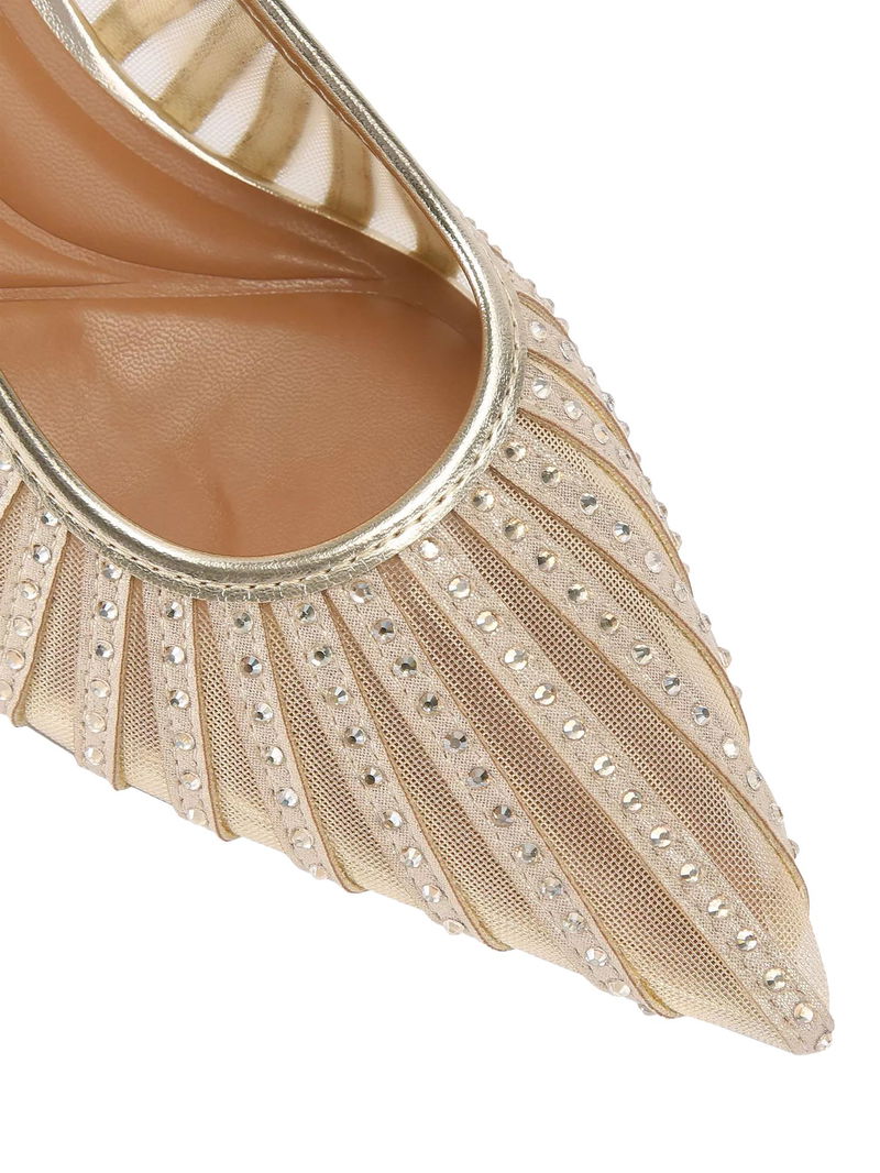 Suzie Embellished Mesh Point Toe Court Shoes, Gold