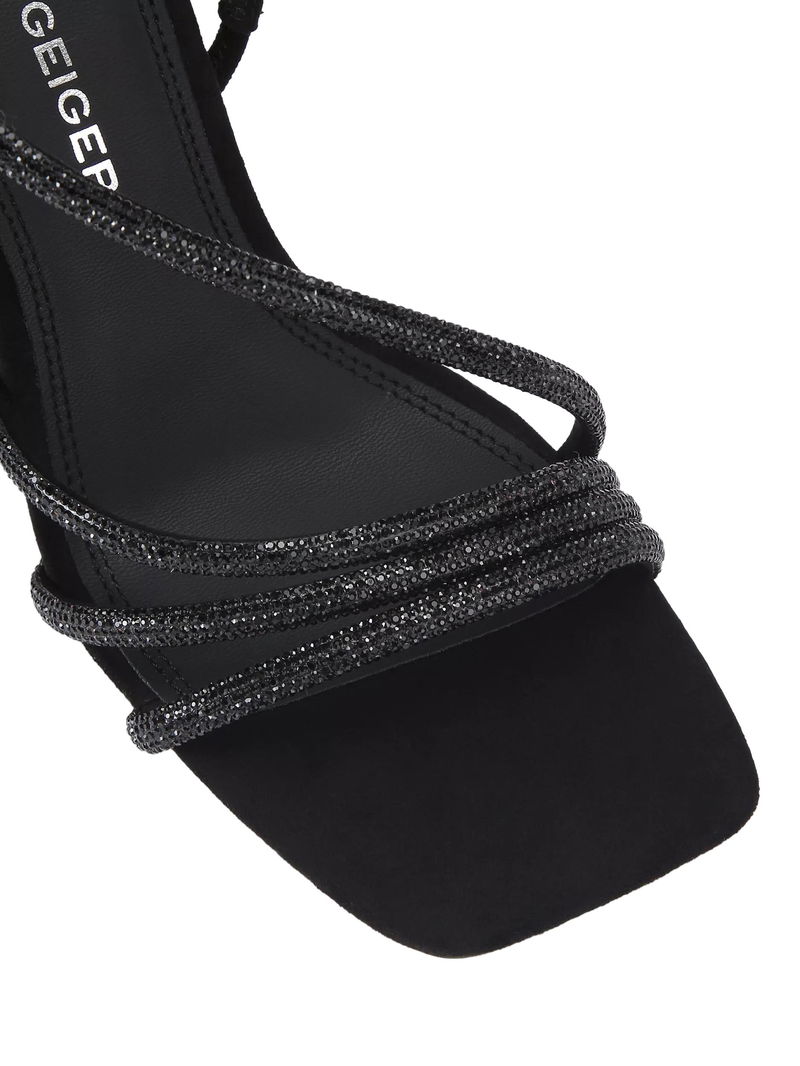 Sweetie Open Square Toe Stiletto Sandals, Black
