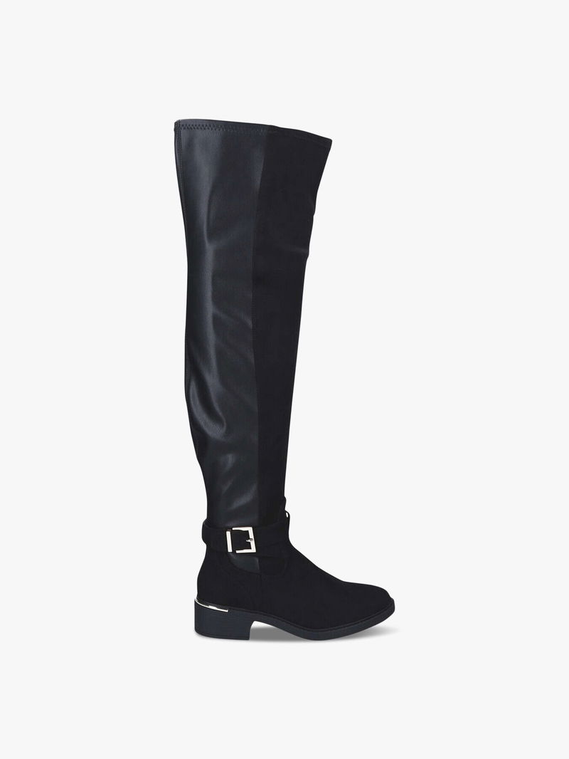 The Tabby Boot from Kurt Geiger features a two tone black exterior with a wide black buckle with gold detailing.