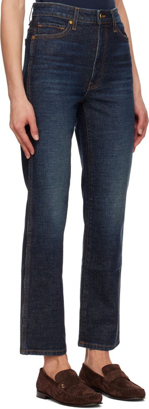 From pocket placement to the color of the topstitching, each detail of Khaite's jeans is carefully considered to ensure an equally comfortable and cool look. This blue 'Abigail' pair has a high waist topped with the signature enameled button and straight legs that are cropped just above the ankles. Wear yours with everything from cardigans to crisp shirting.