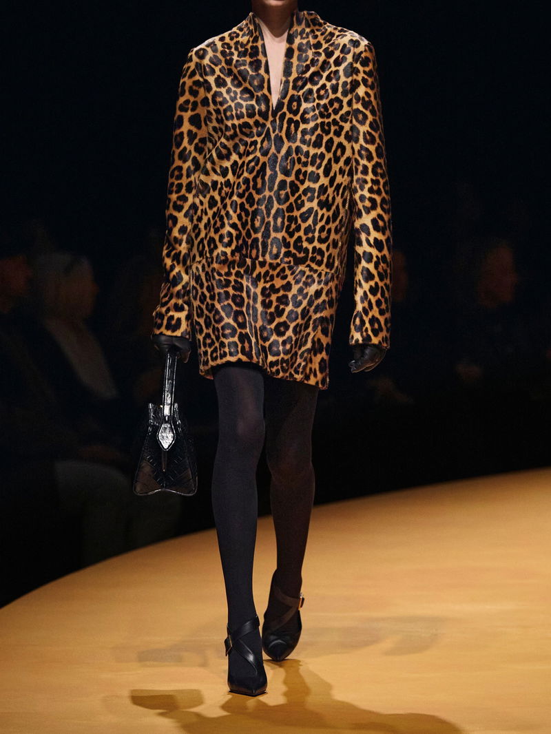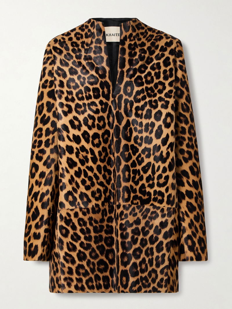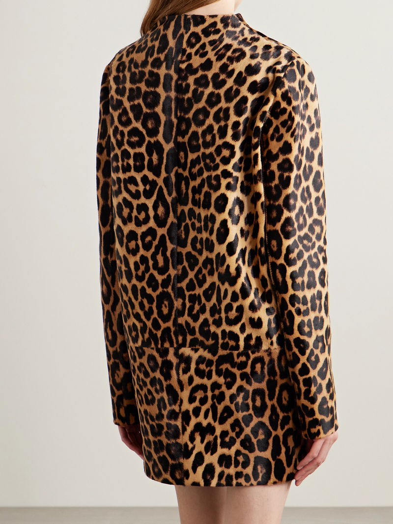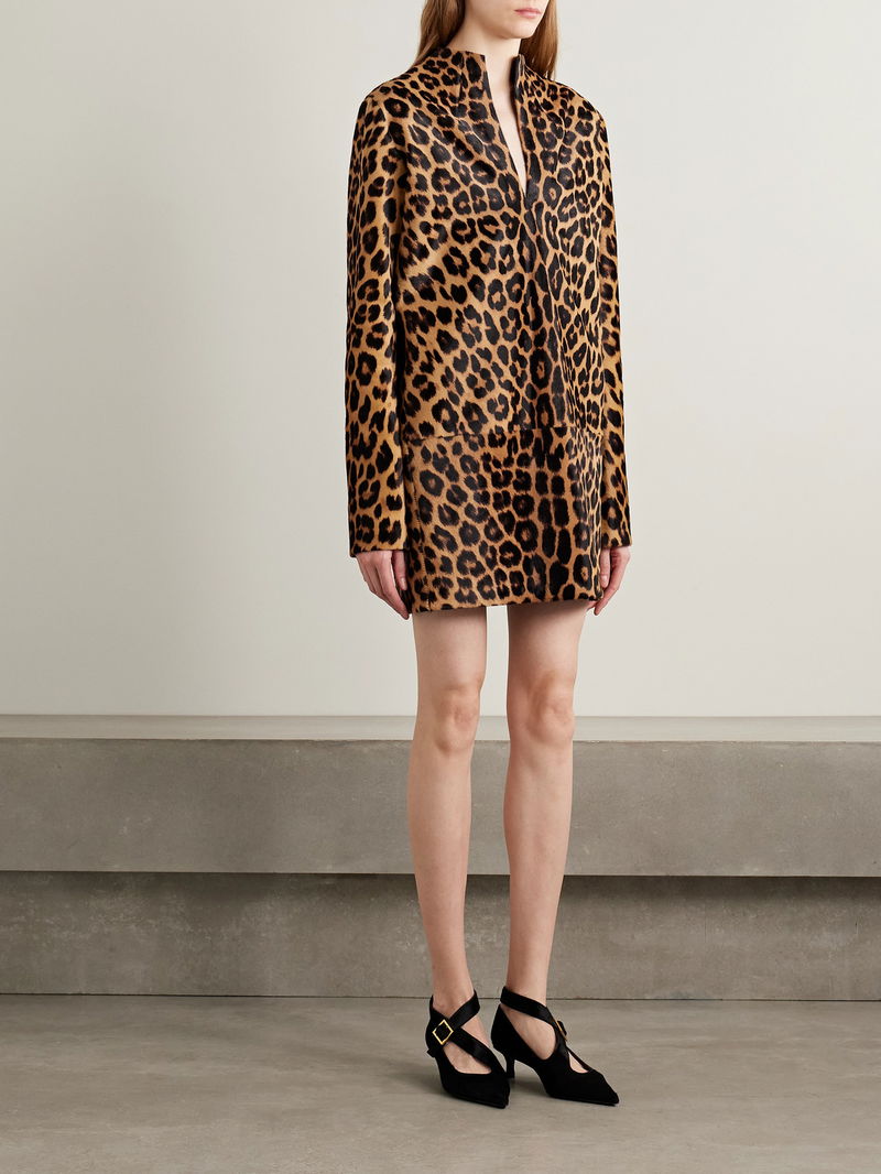 Leopard prints are a key motif throughout KHAITE's Fall '25 collection - do as the brand does and treat it as a neutral. This 'Aleena' dress is cut in a loose, boxy shape from tactile calf hair and has a high neck with a generous split.