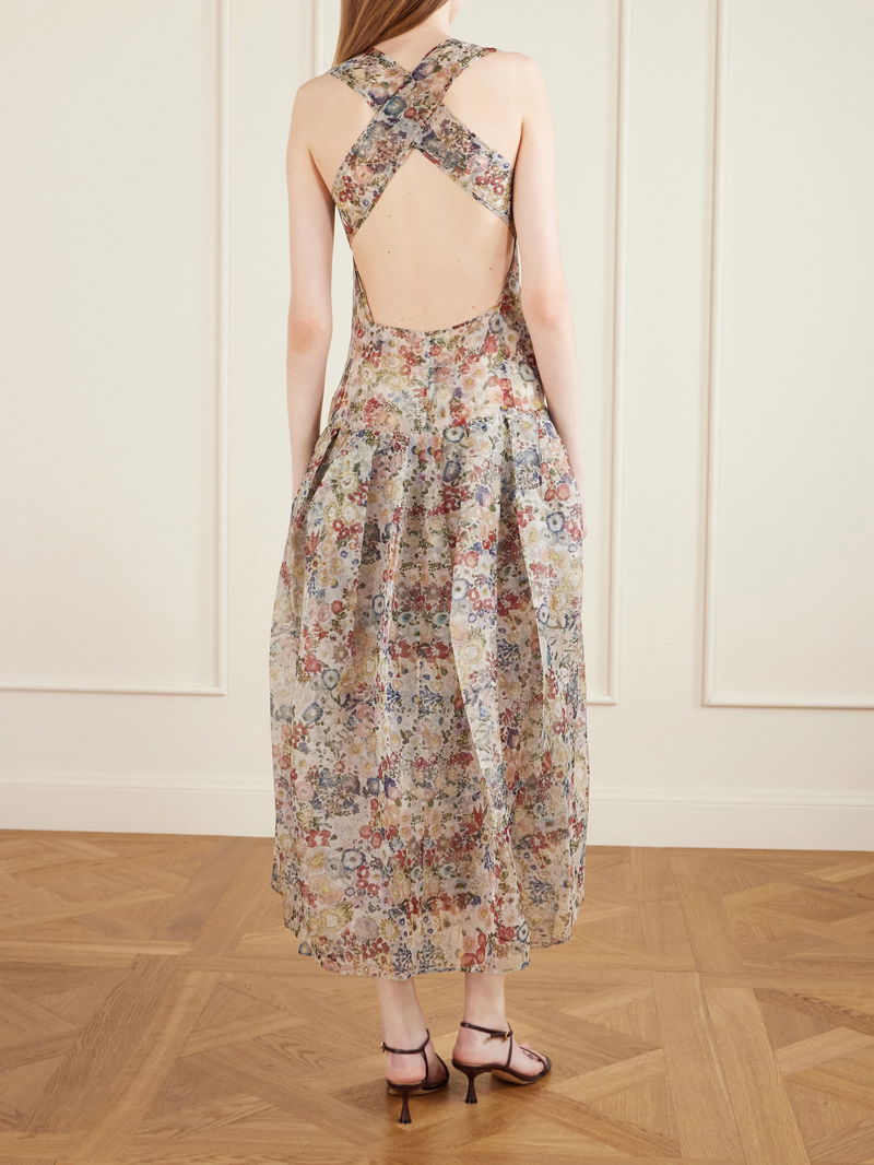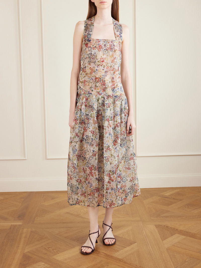 Khaite's dress is made from pure silk-organza that's lightweight and luxurious. It has a square neckline, chunky shoulder straps and a floral design evocative of spring blooms. With a dropped waist that sits low on the hips, the skirt flares out slightly, adding to its romantic appeal.