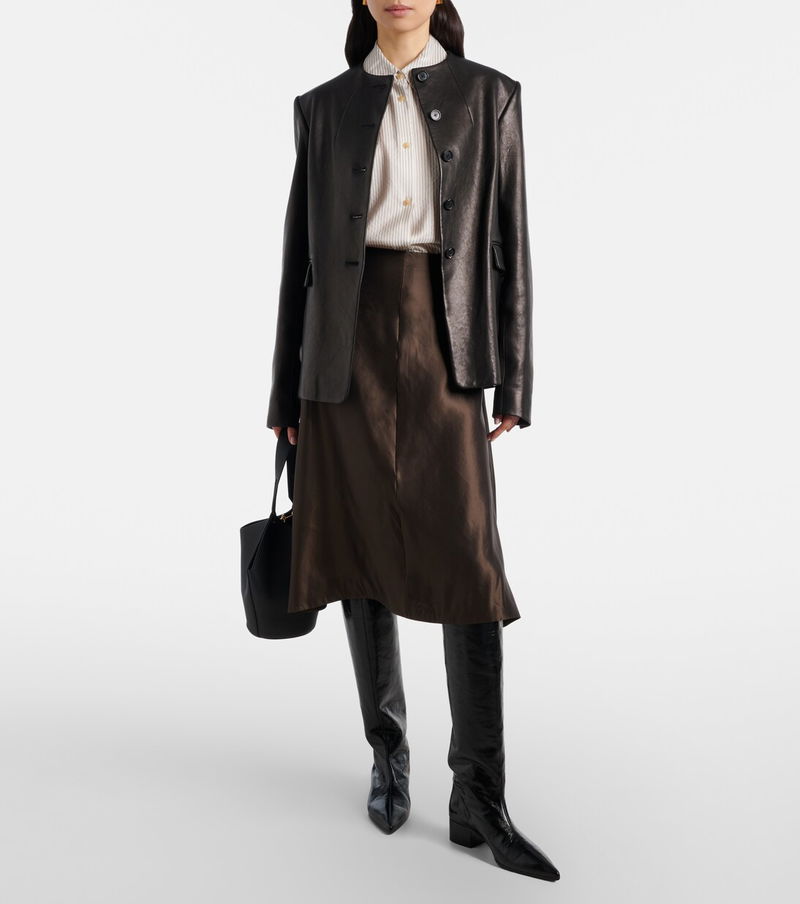 Khaite's minimalist designs exude modern sophistication and effortless elegance. The Andee knee-high boots are crafted from supple leather and boast 40mm heels and pointed toes.