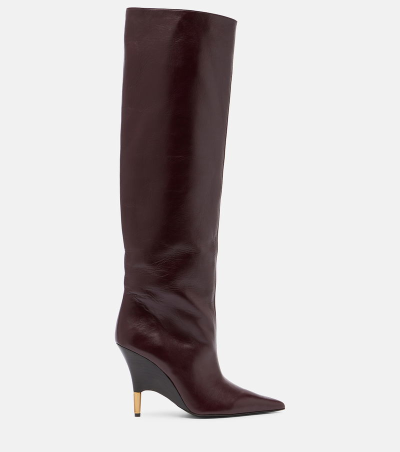 Khaite's minimalist designs exude modern sophistication and effortless elegance. Made in Italy from leather, the Bella knee-high boots feature elegant pointed toes and 100mm heels with a golden finish.