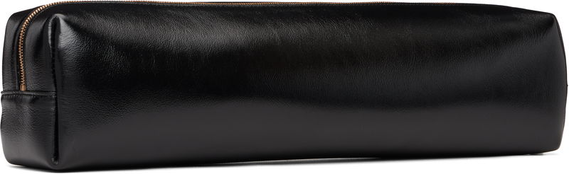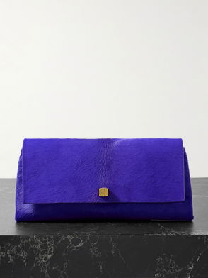 Crinkled polished calfskin clutch.