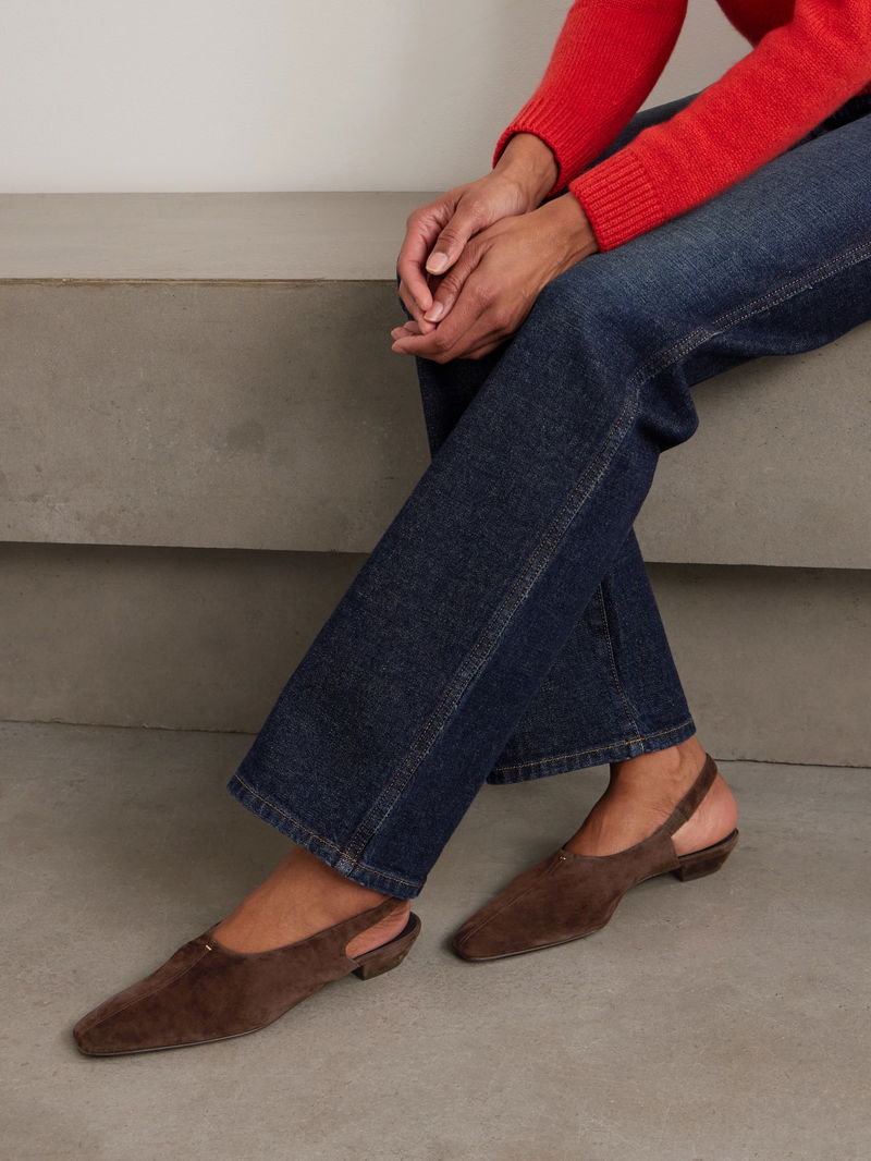 KHAITE's 'Celia' flats are just as chic as they are practical. Made in Italy from suede, they're set on slight heels and have elongated square toes. The elasticated slingback straps ensure a secure, comfortable fit.