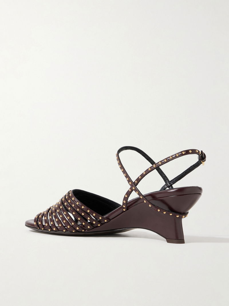 KHAITE's 'Drew' sandals are crafted from smooth glossed-leather and have slim straps accented with gold-tone studs.