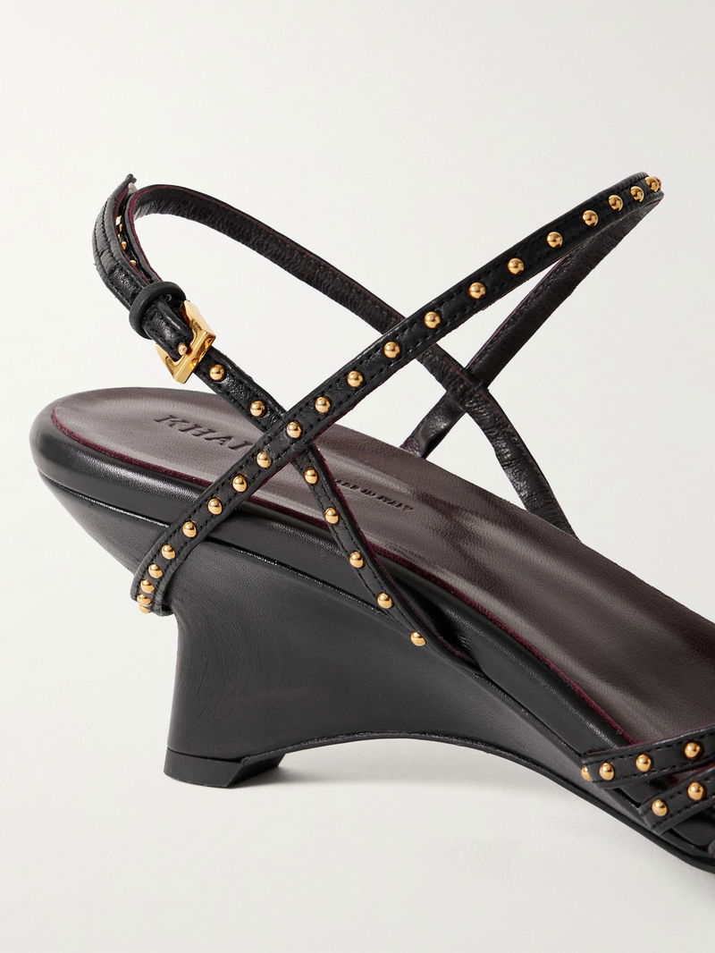 KHAITE's 'Drew' sandals are crafted from smooth glossed-leather and have slim straps accented with gold-tone studs.