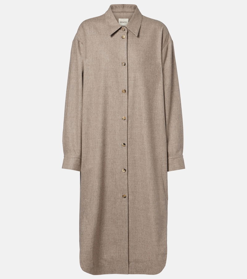 Khaite's minimalist designs exude modern sophistication and effortless elegance. Crafted in Italy from wool and cashmere, the Gloria shirt dress features a flowing silhouette with buttoned front closure and a classic collar.