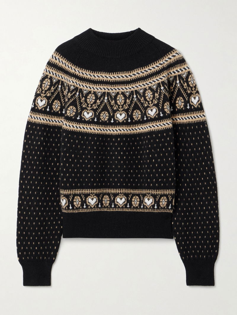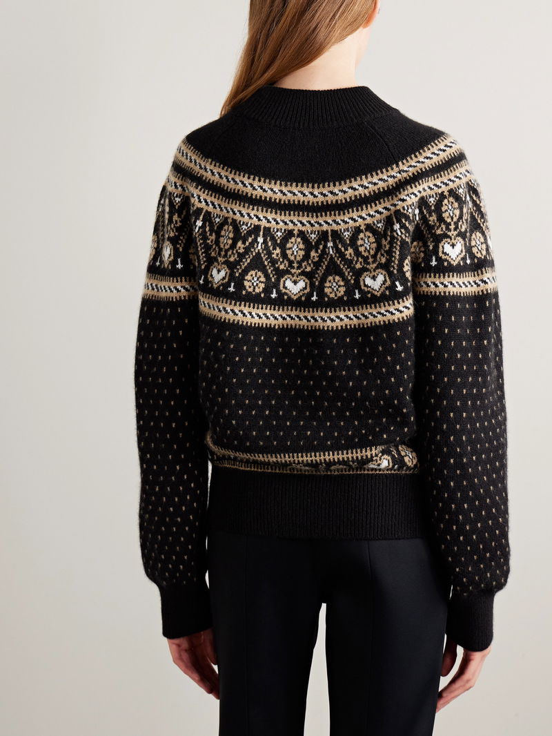 KHAITE's 'Guy' sweater depicts a modern version of traditional Fair Isle motifs. It's intarsia-knitted from cashmere and is bordered by wide ribbed trims. Wear yours with tailoring in the city or with cozy leggings and snow boots on your next ski trip.