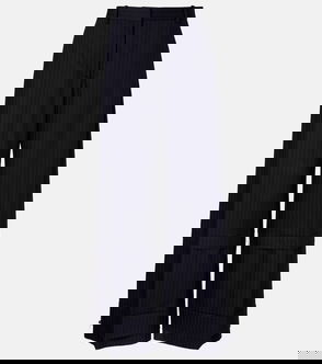 Khaite's 'Jacob' pants are made from herringbone wool-blend and printed with beige pinstripes. They sit high on the waist and have voluminous wide-legs legs that pool over pumps.