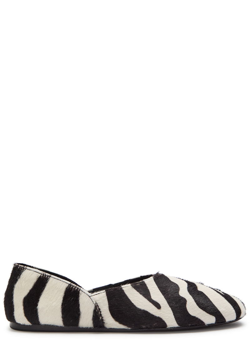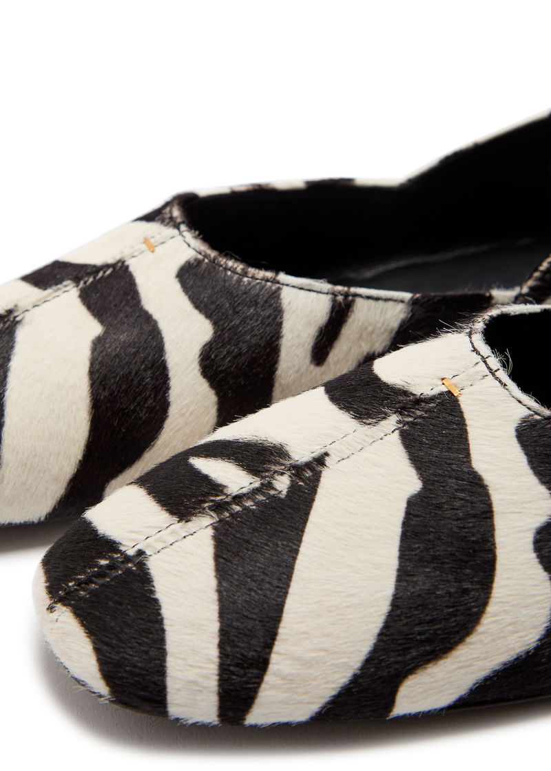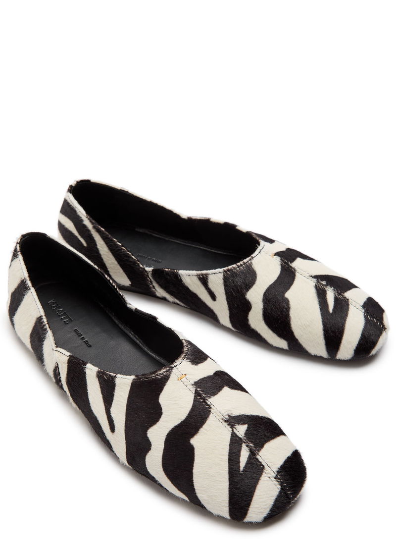 KHAITE calf hair ballet flats. Zebra print, round toe. Slip-on.