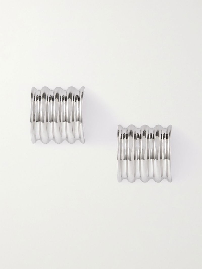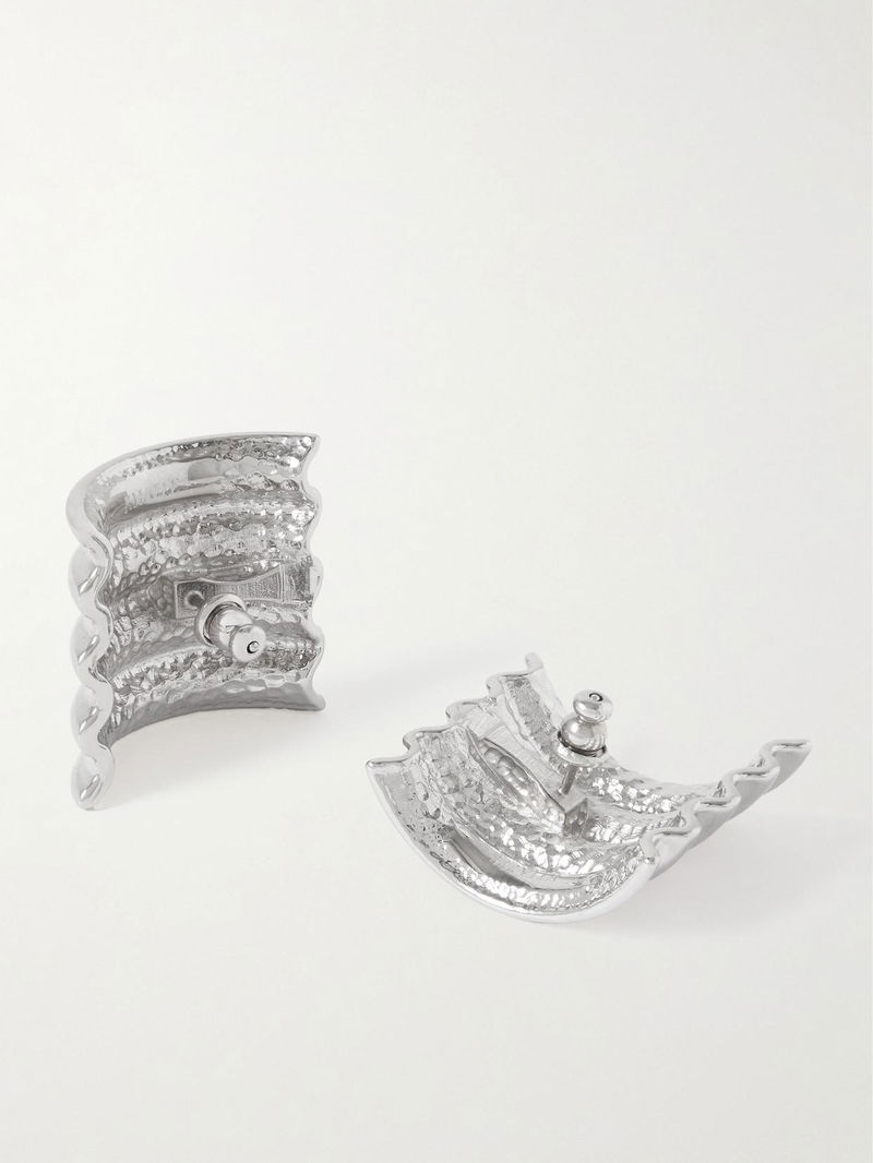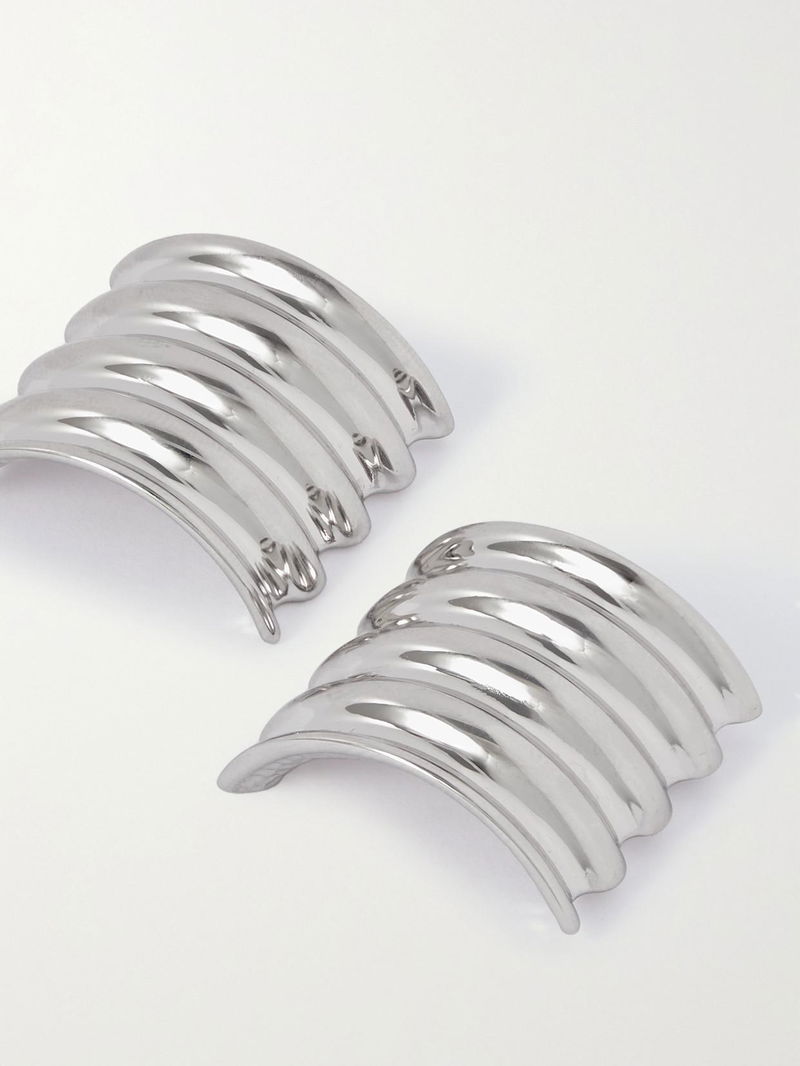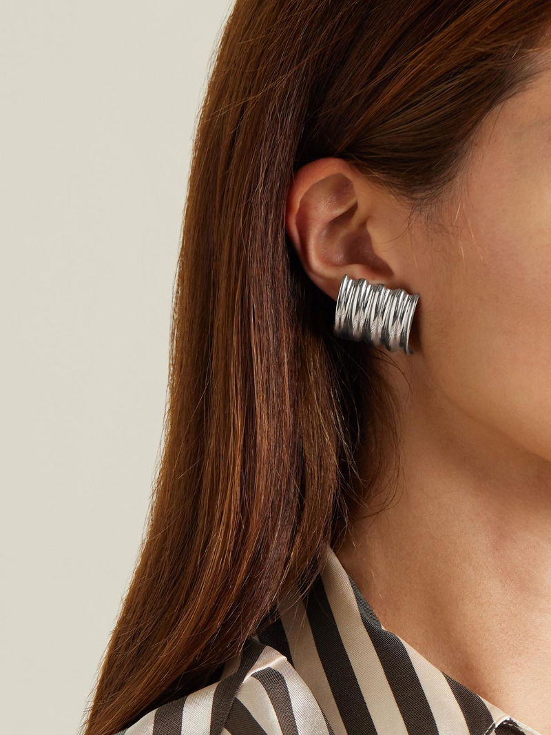 Khaite's 'Julius' earrings have an architectural quality that chimes with the sharpness of the label's Fall '23 collection. Made in Italy, they are cast from silver-tone metal and have a sculptural, curved shape.
