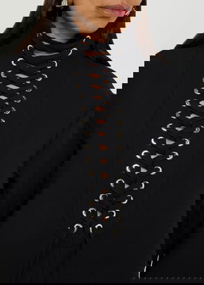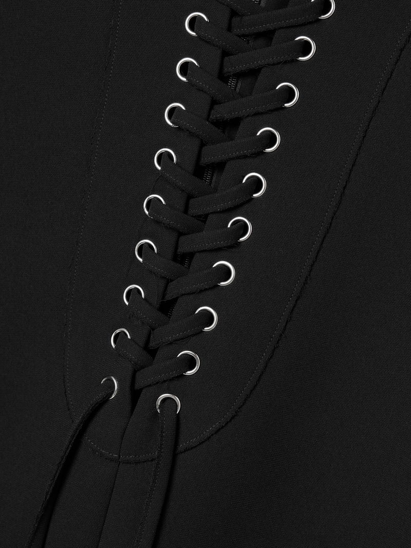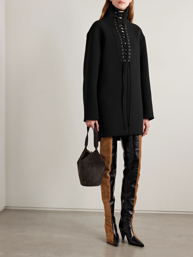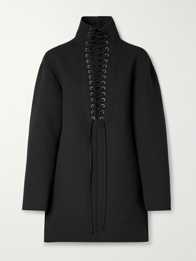 KHAITE's 'Lee' dress has bold lace-up ties that extend all the way through the funnel neckline. It's made from thick, double-faced crepe in a relaxed shift silhouette. Style yours with a pair of the brand's boots.