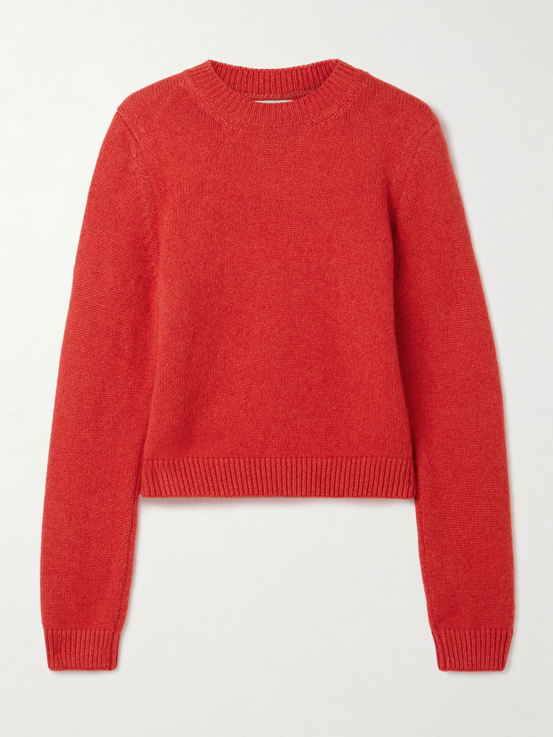 KHAITE's 'Leta' sweater has a relaxed fit that drapes and hangs so well. It's knitted from cashmere in a slightly loose, cropped shape so it perfectly meets high-waist pants and jeans.