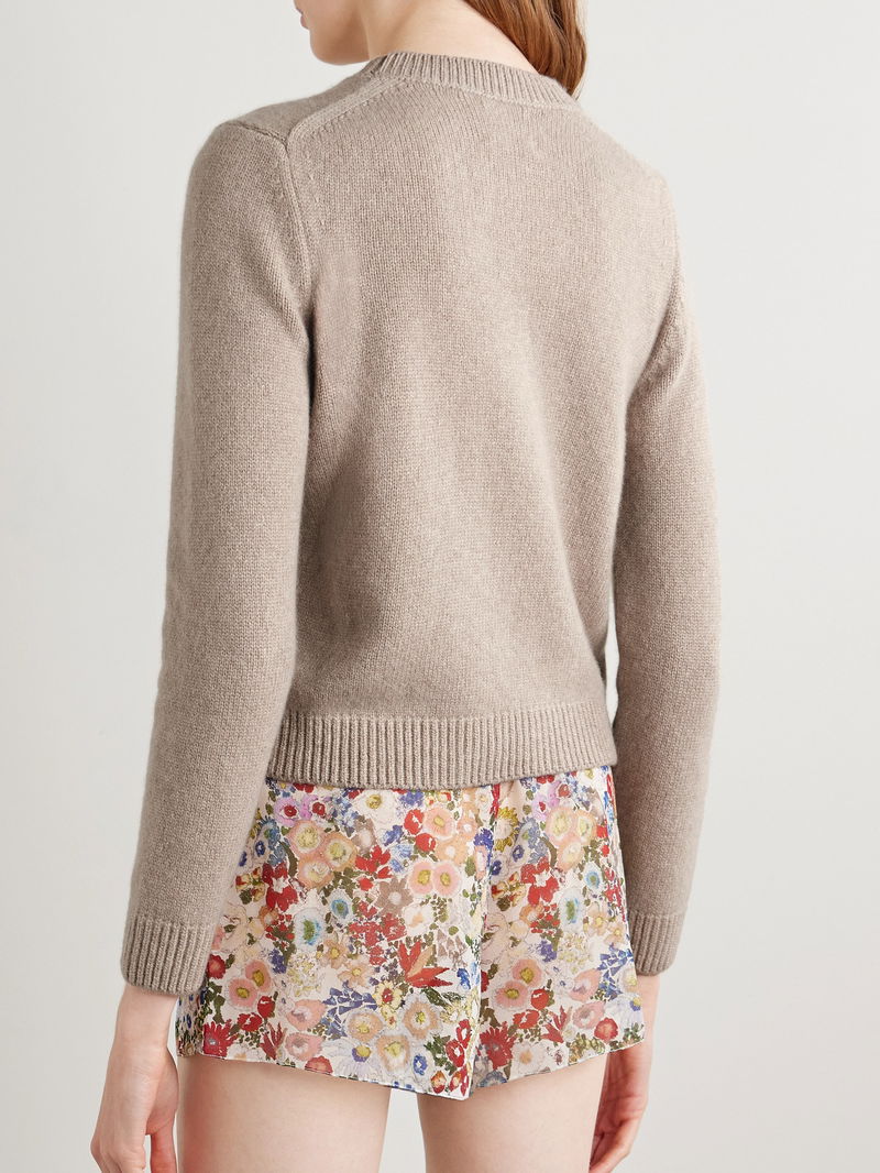 KHAITE's 'Leta' sweater has a relaxed fit that drapes and hangs so well. It's knitted from cashmere in a slightly loose, cropped shape so it perfectly meets high-waist pants and jeans.