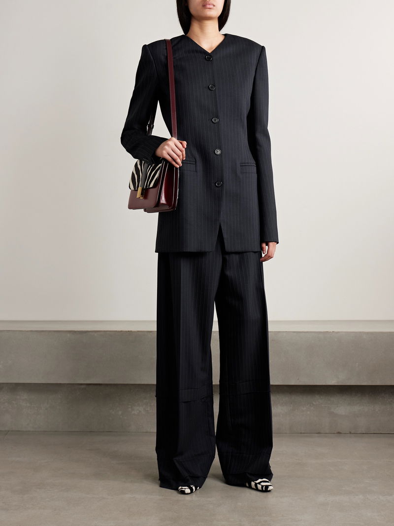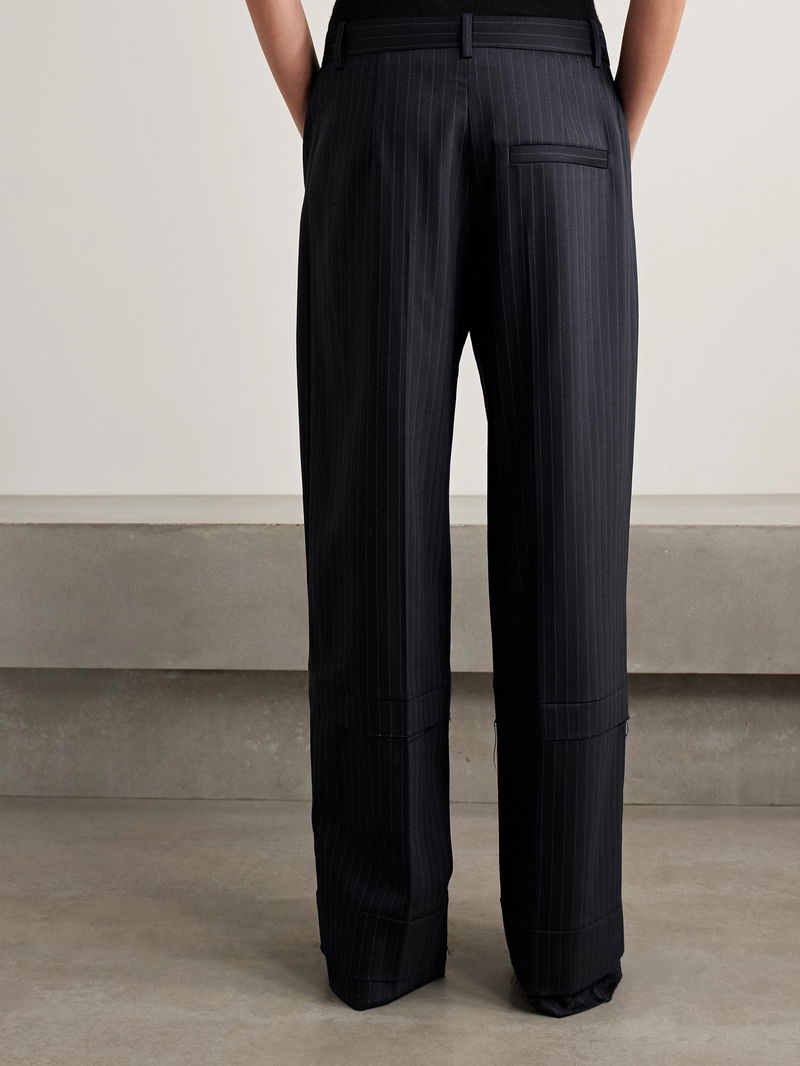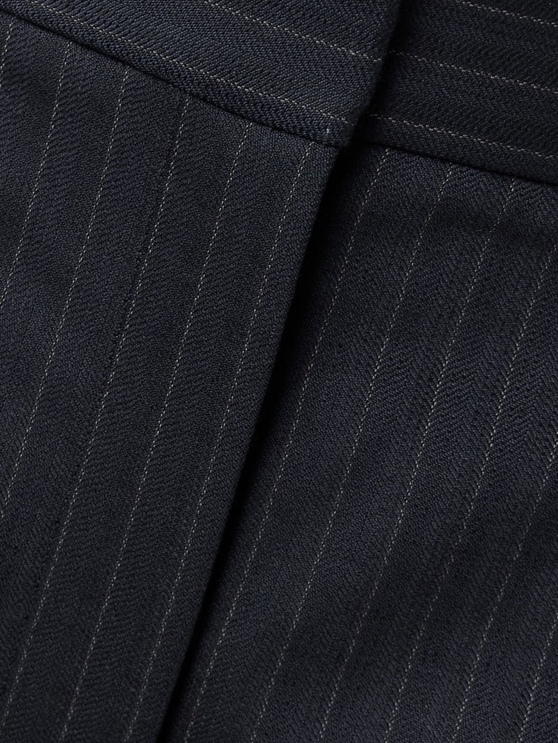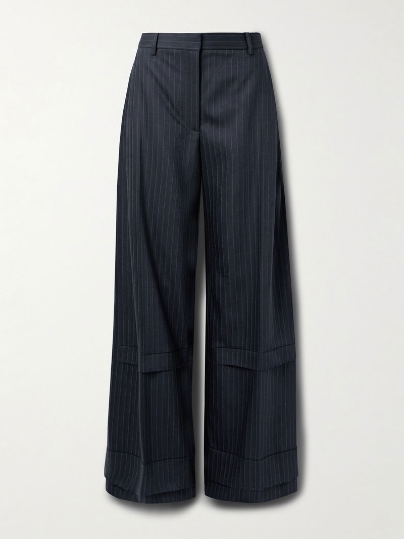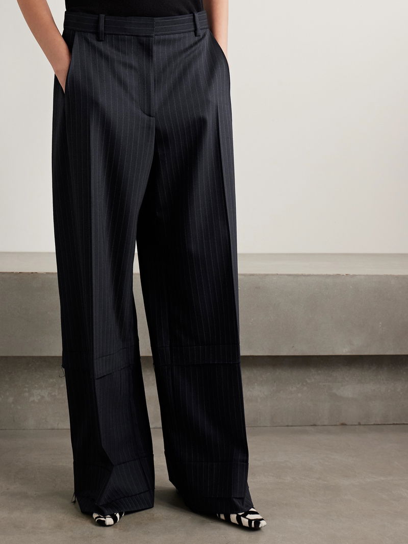Designed to be worn low on the hips, they're made from pinstriped herringbone twill that's sourced from Italy, and have a relaxed, wide-leg cut.