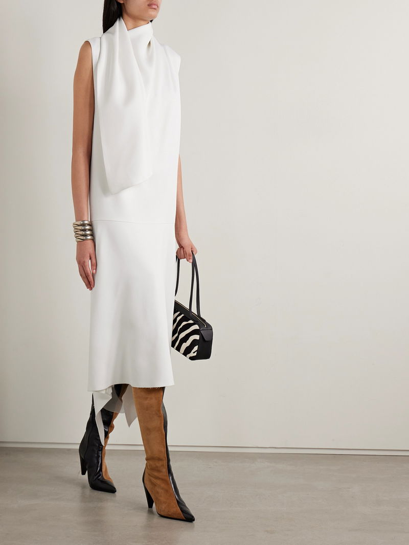 KHAITE's 'Loell' dress exemplifies the brand's understated elegance. Made from lustrous duchesse-satin and lined with lightweight organza, it's designed with a cool turtleneck and a panel that drapes over your shoulder.
