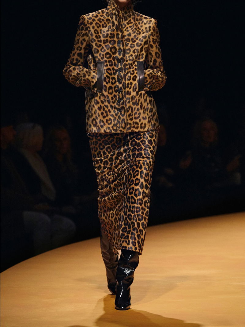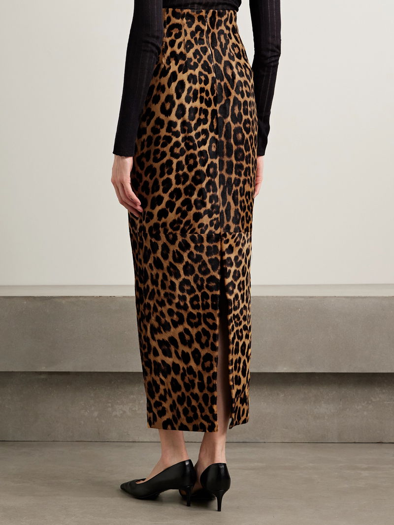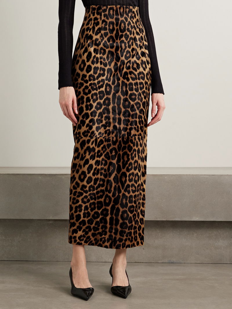 KHAITE's 'Loxley' skirt feels so glamorous thanks to its bold leopard print. As seen on the runways, this calf hair version has a darted waist and falls to an ankle-grazing hem that's split along the back. The smoothing satin lining stops it from clinging.