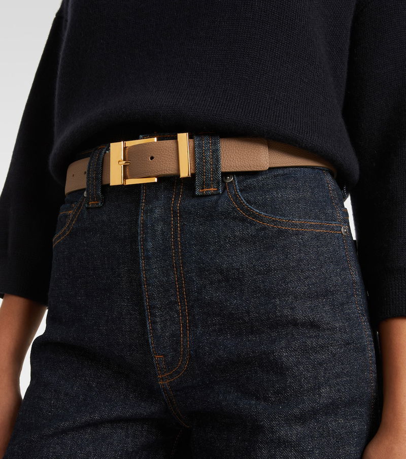Khaite's minimalist designs exude modern sophistication and effortless elegance. The brand’s refined craftsmanship is showcased in the Manhattan belt, crafted from grained leather and complete with a gold-toned square buckle.