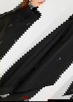 The flared skirt of Khaite’s black Marge coat encapsulates the glamorous New York City spirit of the AW20 collection. It’s crafted from recycled cashmere to a longline silhouette with silk-satin peak lapels – the same glossy satin envelops the interior – and streamlined jetted pockets, then fastens to a double-breasted front with gold monogrammed buttons.