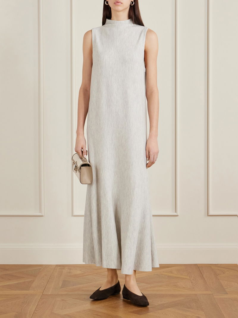 KHAITE's 'Margo' dress is elegant, simple and comfortable. Made from soft merino wool, it has a chic high neck, generously sized armholes and a body-skimming fit that subtly flares at the hem. Wear yours with mules and statement jewelry.