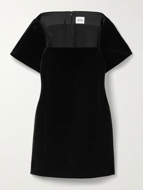 Sheer cotton- and silk-blend georgette dress. Silk satin lace-up fastening at plunging V-neck.