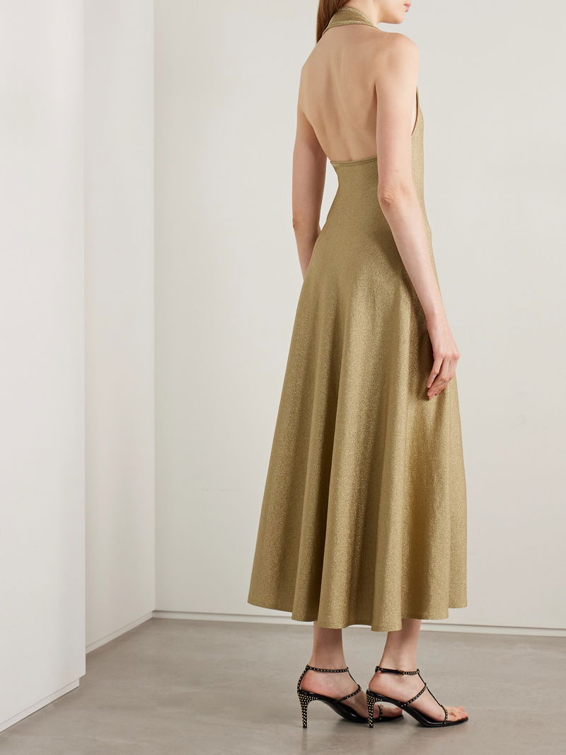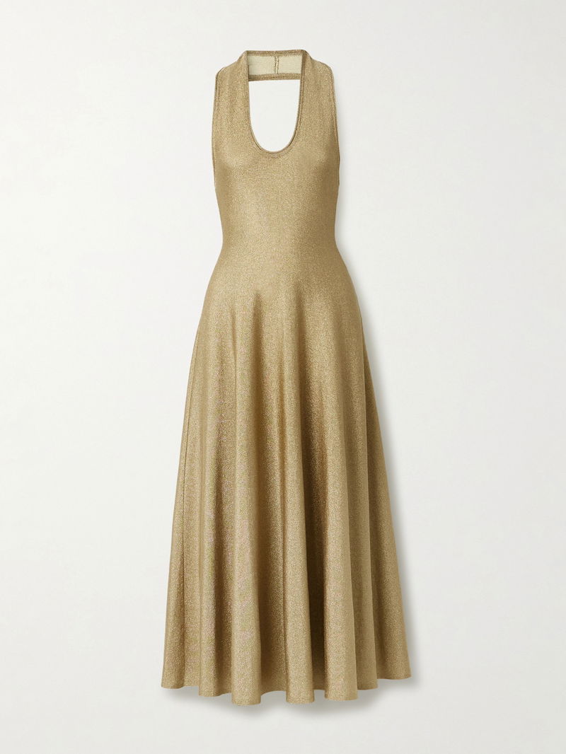 KHAITE's 'Melina' dress is part of our exclusive holiday capsule designed with party season in mind. This halterneck style is made from shimmering Lurex that comfortably hugs your figure before falling to a swishy skirt.