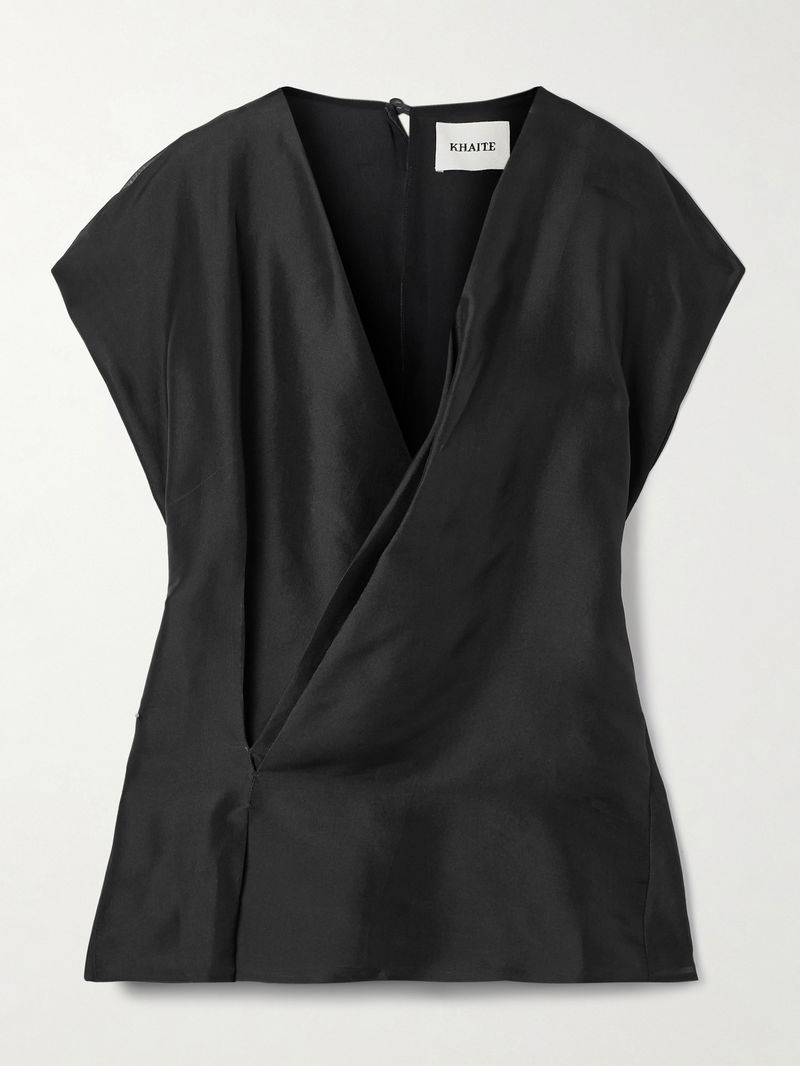 KHAITE's 'Mer' blouse is cut from airy silk-organza and has a pleated, wrap-effect front that nicely frames your décolletage. Wear yours with everything from jeans to fluid skirts.
