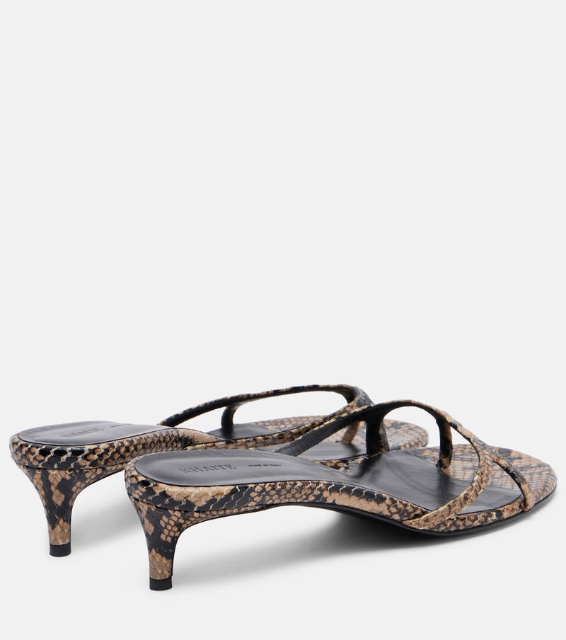 Khaite's minimalist designs exude modern sophistication and effortless elegance. The Mila mules are cut from snake-printed leather into a round-toe silhouette and boast 35mm kitten heels and thin straps across the uppers.
