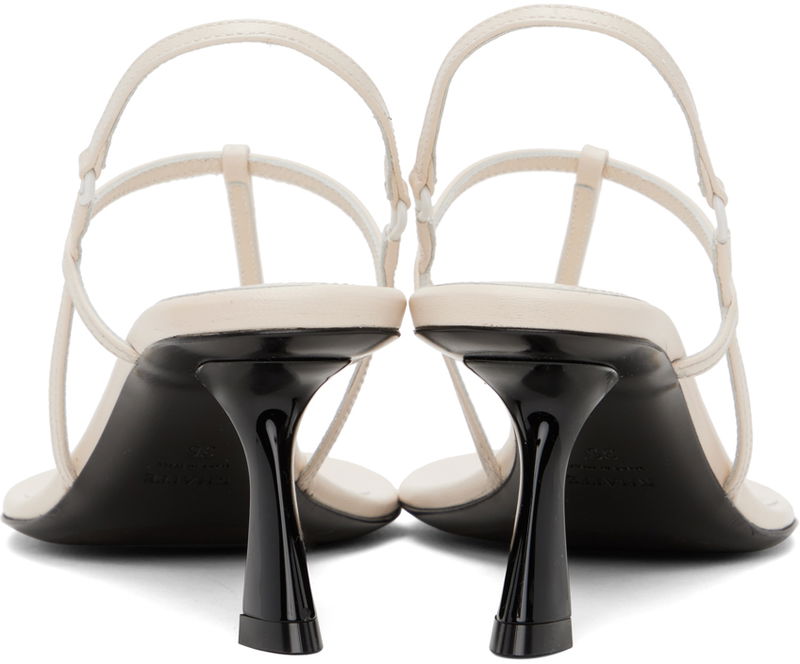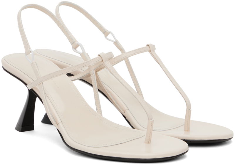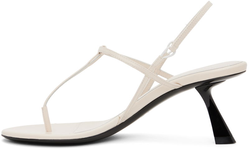 Capretto leather heeled sandals in off-white. Thong-style strap at open toe. Elasticized ankle strap. Logo embossed at leather footbed. Patent stiletto heel with rubber injection.