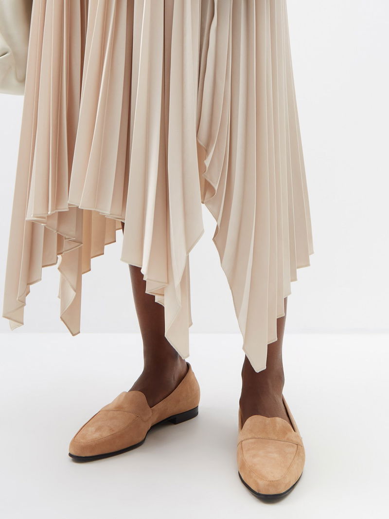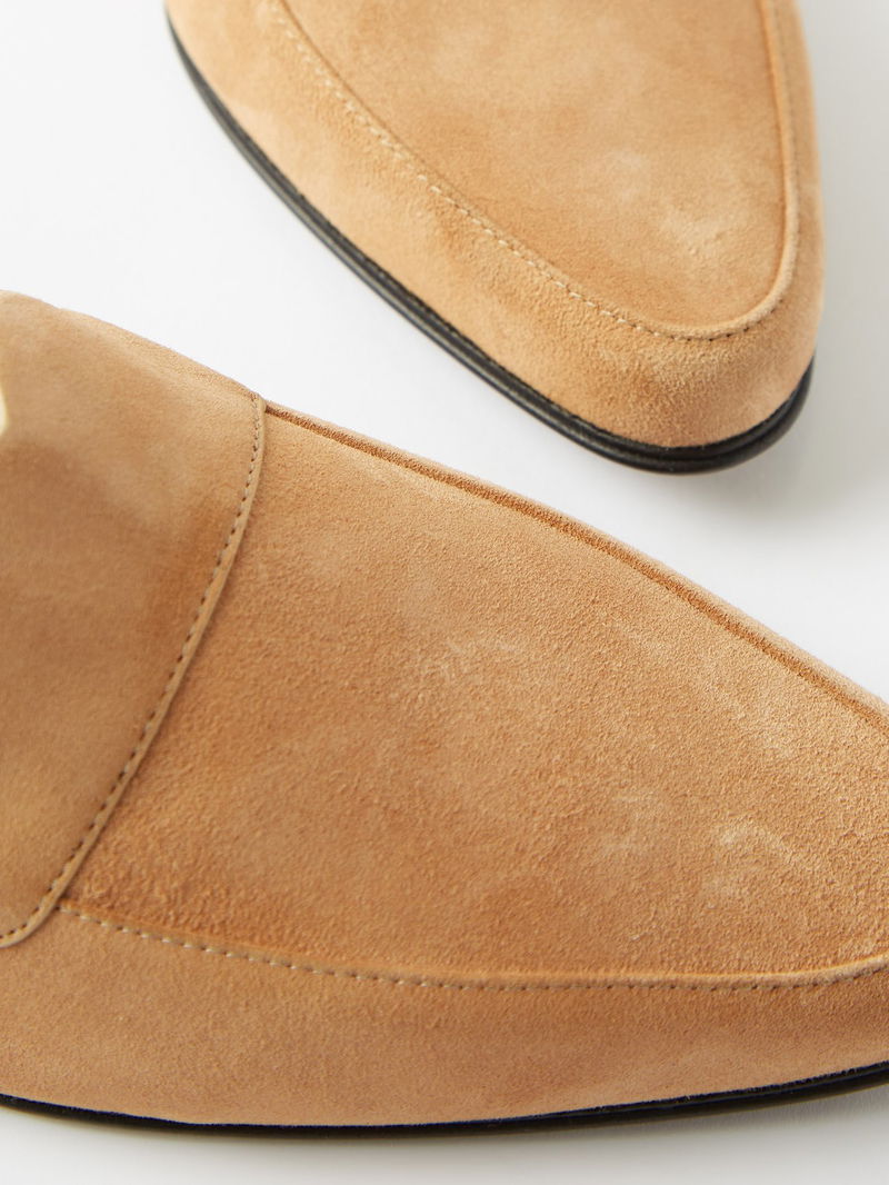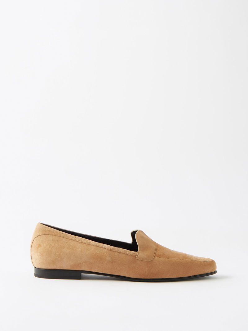 Khaite's refined vision informs these sleek Pippen loafers, shaped from camel suede with an almond toe, a notched topline and a low-stacked heel.