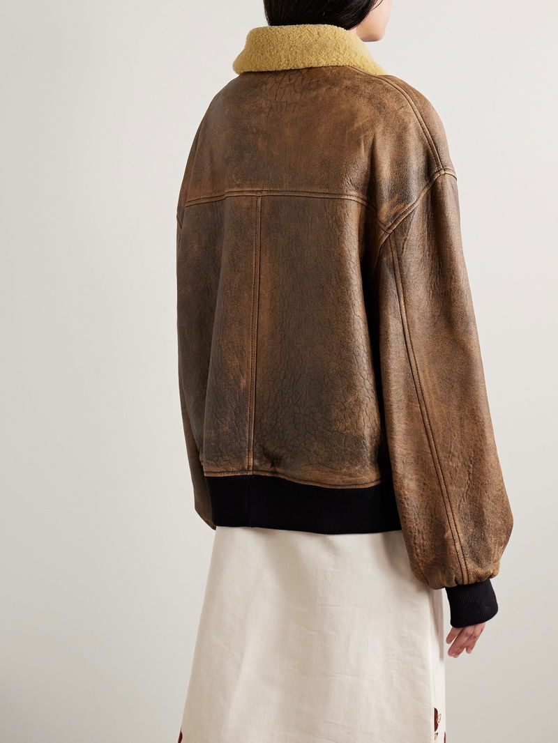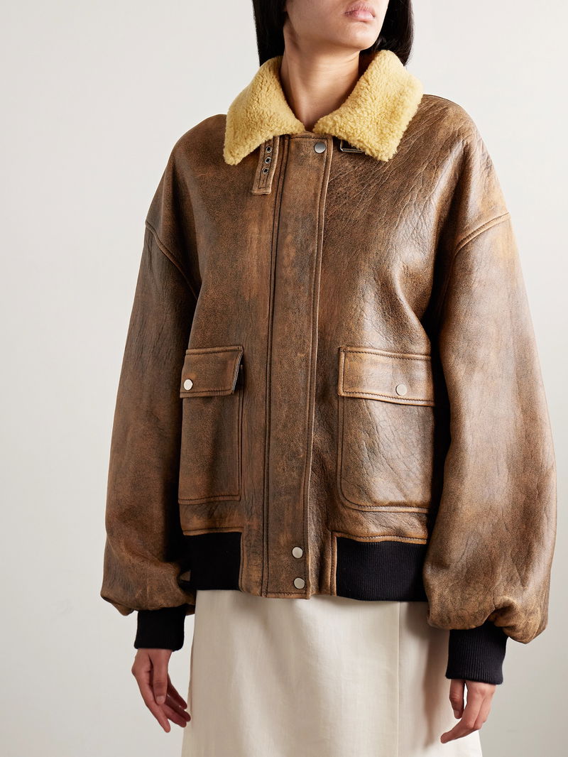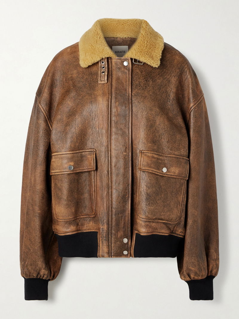 KHAITE's 'Sandor' jacket is made from substantial leather with an antiqued finish. It's cut for a loose fit and accented with a cozy shearling collar and contrasting ribbed trims.
