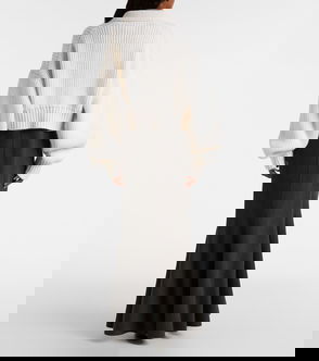 Khaite's sky-blue Scarlet cardigan has a deep V-neckline, patch pockets and statement-making flared sleeves – all of which are outlined with a neat fisherman's rib stitch. It's crafted in Mongolia from local cashmere and fastens along the front with tortoiseshell-effect buttons.