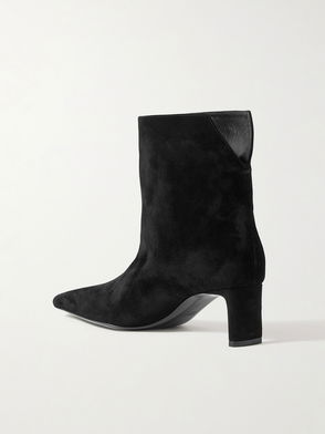 Guided by sumptuous materials and a sharpened eye for design, khaite provides its signature sense of wearable luxury with the Ona boots. Made from velvety suede, the ankle silhouette gracefully extends into a gently pointed square toe and sits atop a sculptural heel.