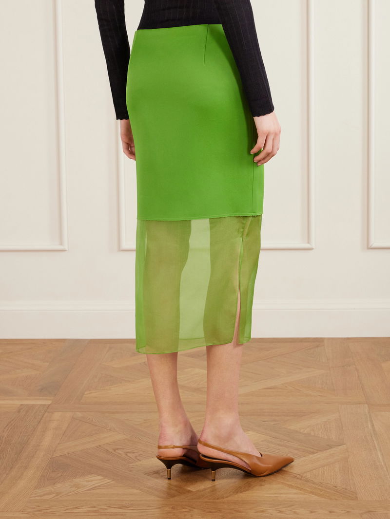 Sybil Layered Frayed Satin-crepe And Organza Midi Skirt