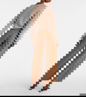Khaite's black Teyana trousers are cut from a blend with viscose and wool to a tailored waist-framing high rise and a sweeping wide-leg silhouette.