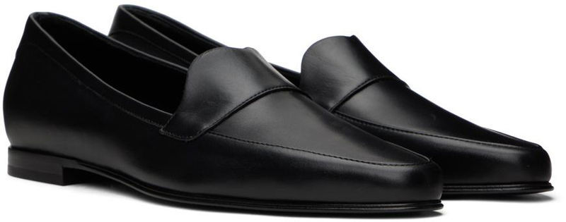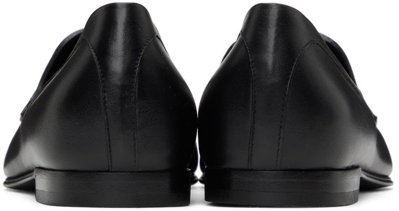 Buffed calfskin loafers in black.· Almond moc toe · Strap at vamp· Stacked leather heel with rubber injection · Leather sole.